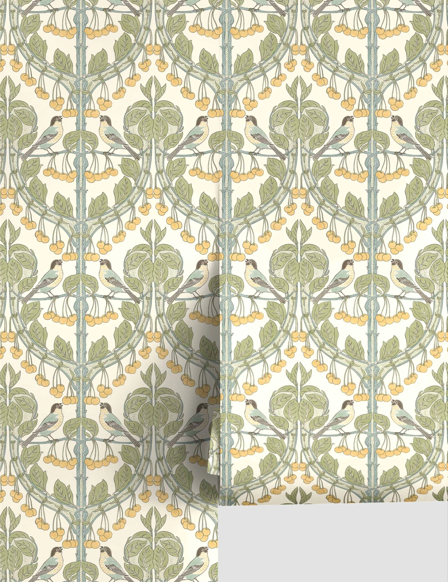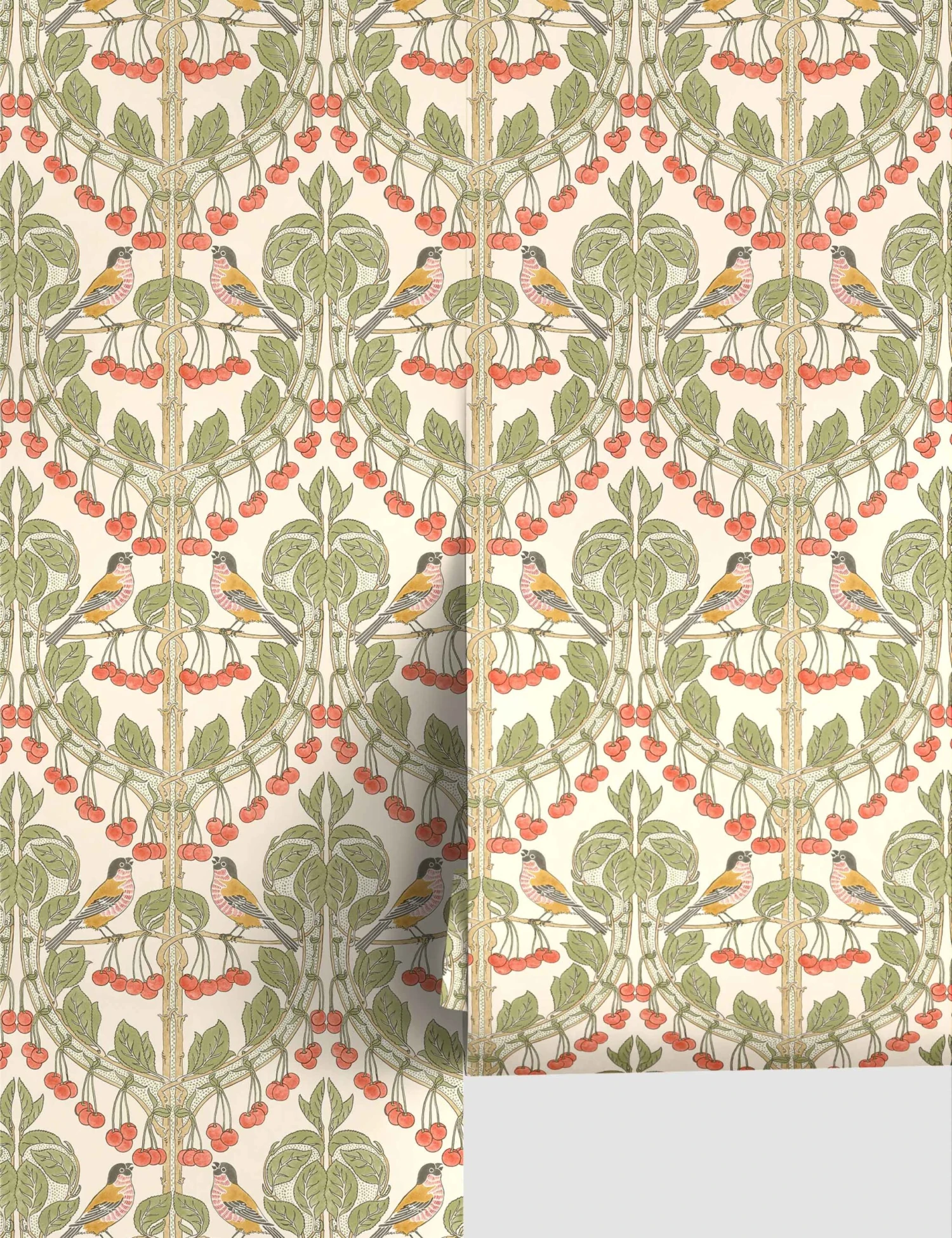 Sometimes, a traditional element is the boldest touch of all. With its bright colors and charming print of birds and cherries, this wallpaper from GP & J Baker brings fresh style with timeless appeal. The wallpaper’s elegant pattern makes the perfect backdrop for a refined curation.