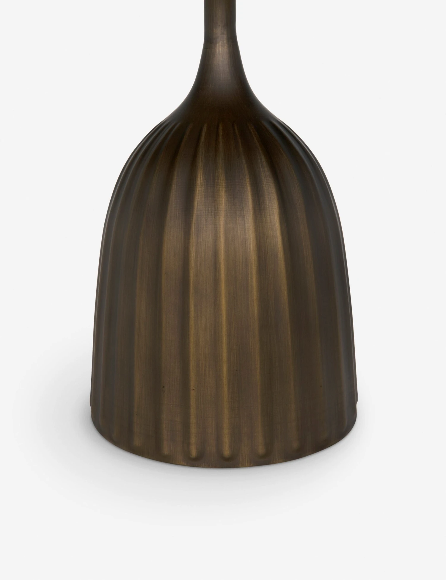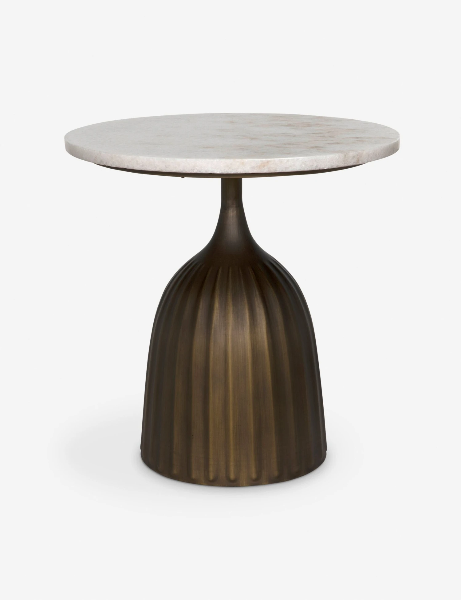 With its fluted tulip base, this side table strikes a sculptural poise beside any seat. The mix of metal and marble offers a sophisticated pairing that will elevate your edit. Style this end table with a fresh bouquet to echo its floral form.