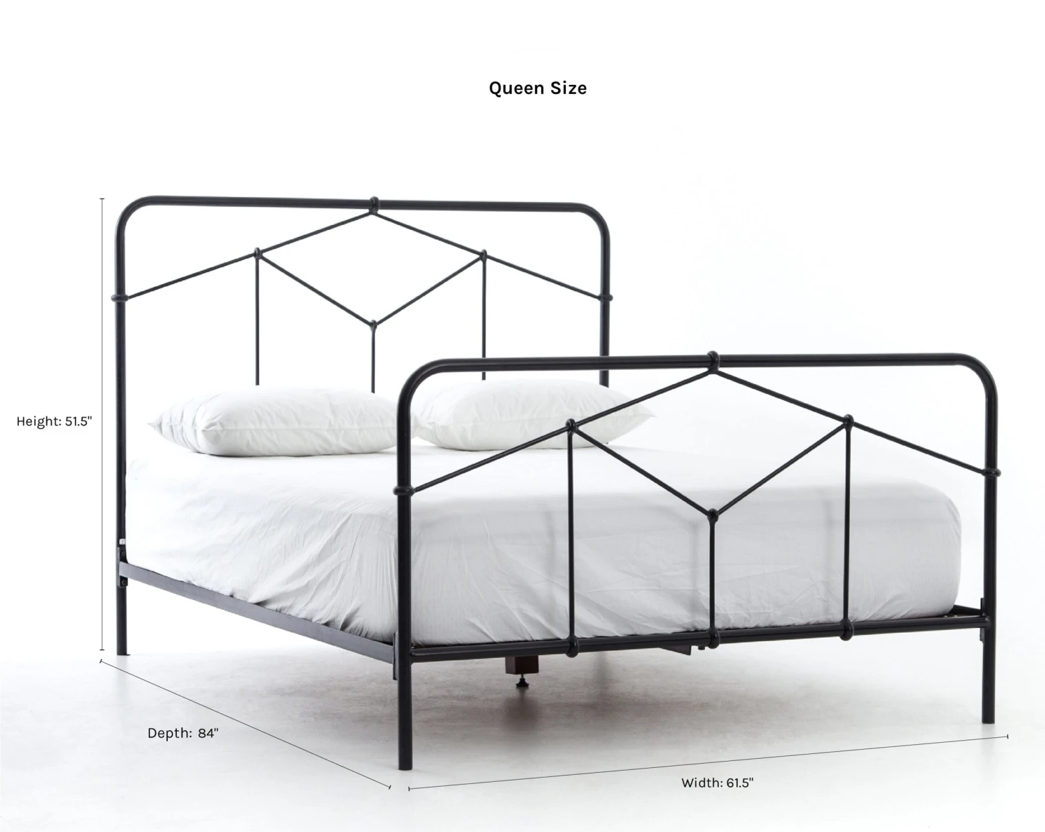 The Maddie Bed is a timeless look with iron tubing characteristics of vintage European bedrooms. Keep your bedding style simple for an airy, easy vibe.