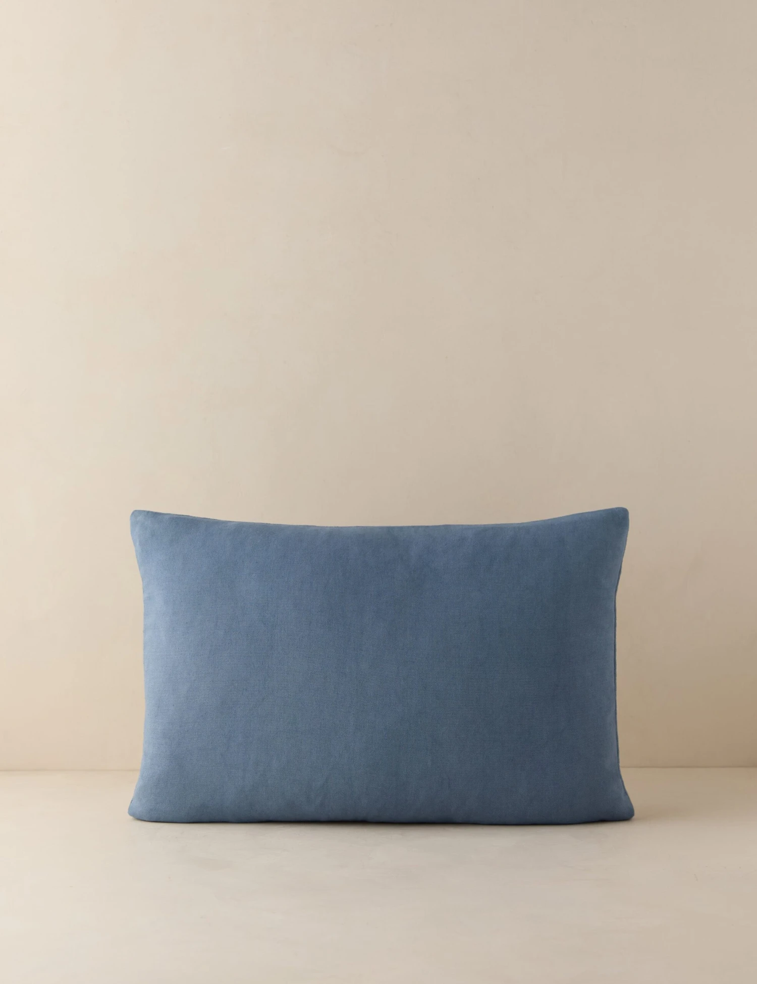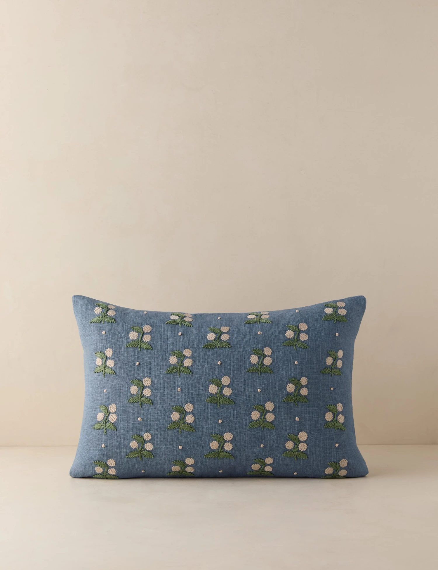 Our Madelief pillow brings a delicate touch to any curation. The embroidered florals pop in a fresh palette of green and cream on a denim field. We love this pillow for a timeless flourish on your sofa or bed.
