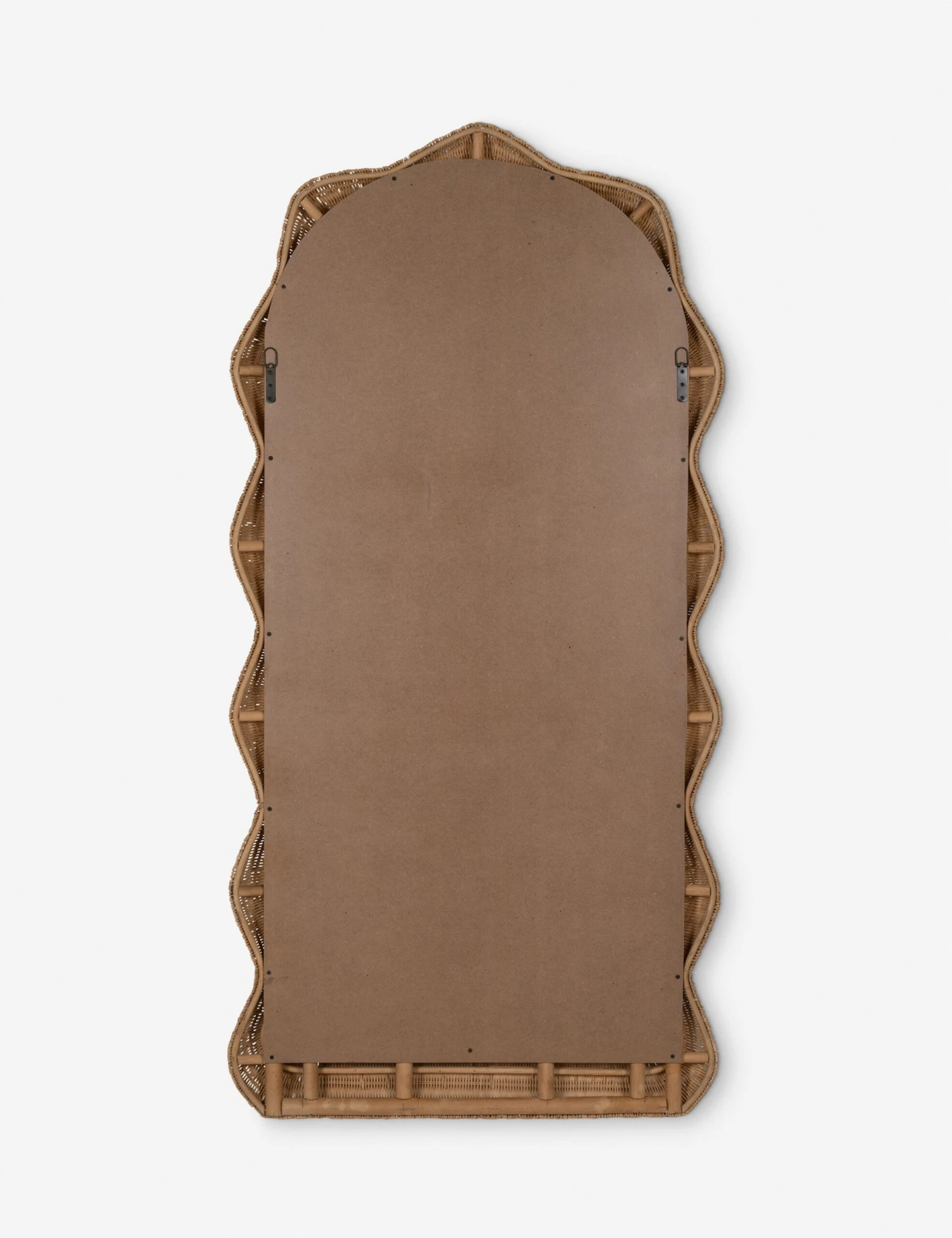 Megan Molten brings an artful edge to wicker in her Maxine mirror. Its thick rattan frame is woven with a serpentine shape for a stunning blend of warmth and sophistication. This large floor mirror is perfect for layering in natural texture while opening up the space and augmenting light.
