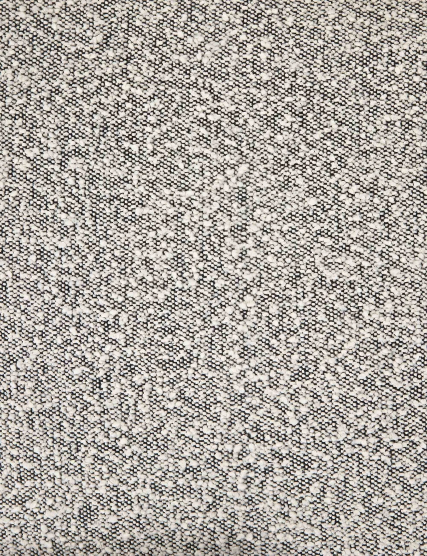 A swooping reclined seat is complemented with a billowy seat cushion and black-finished iron frame to make for a refined accent chair. Upholstered with interwoven cream, black, and gray yarns, its boucle fabric features a striking heathered effect. Match this occasional chair with an ottoman to create a relaxing lounge spot in your living room.