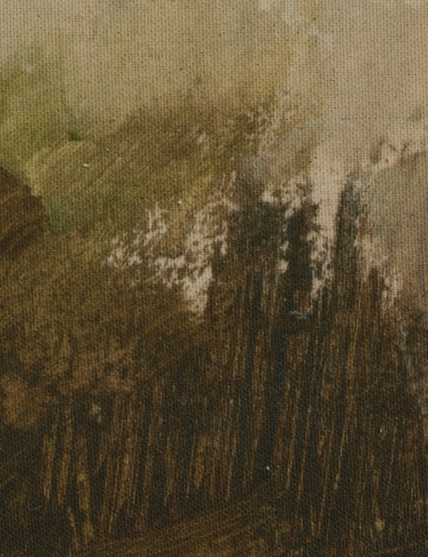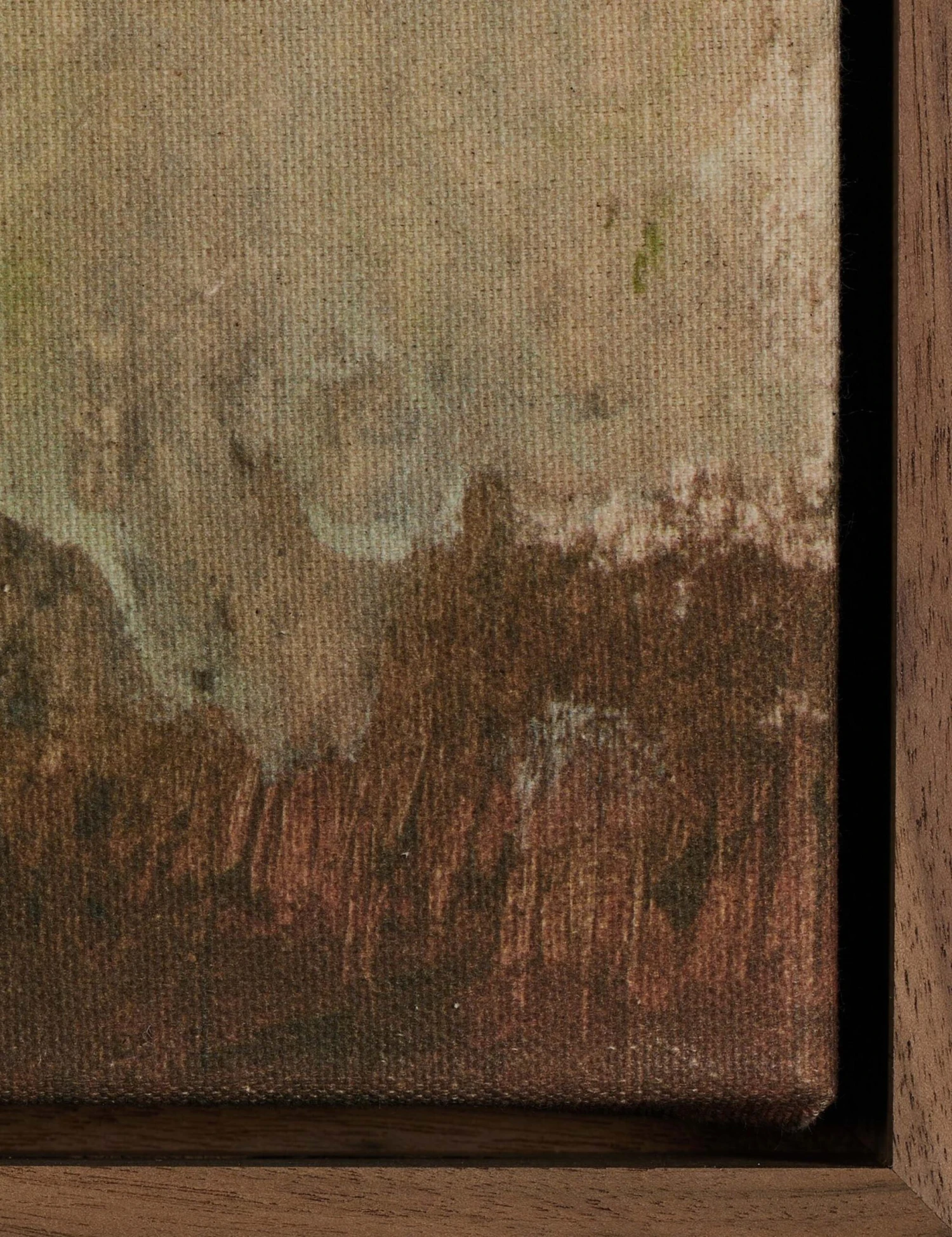 Moody tones and a soft, atmospheric composition evoke a sense of grounded calm in this piece by Dan Hobday. The earthy palette blends beautifully into modern and organic wall art collections. This artwork is printed on raw canvas and framed in rustic walnut for added depth and warmth.