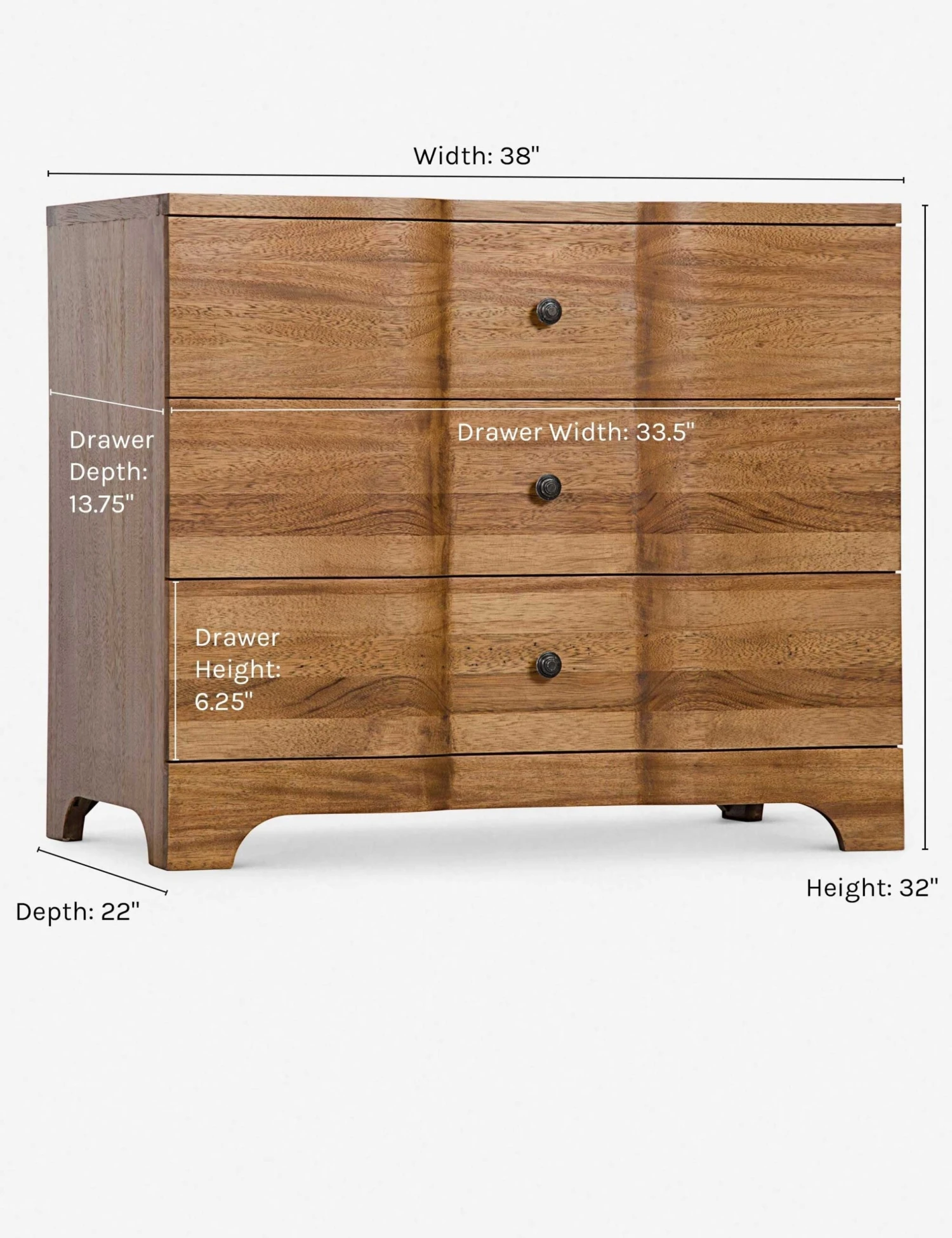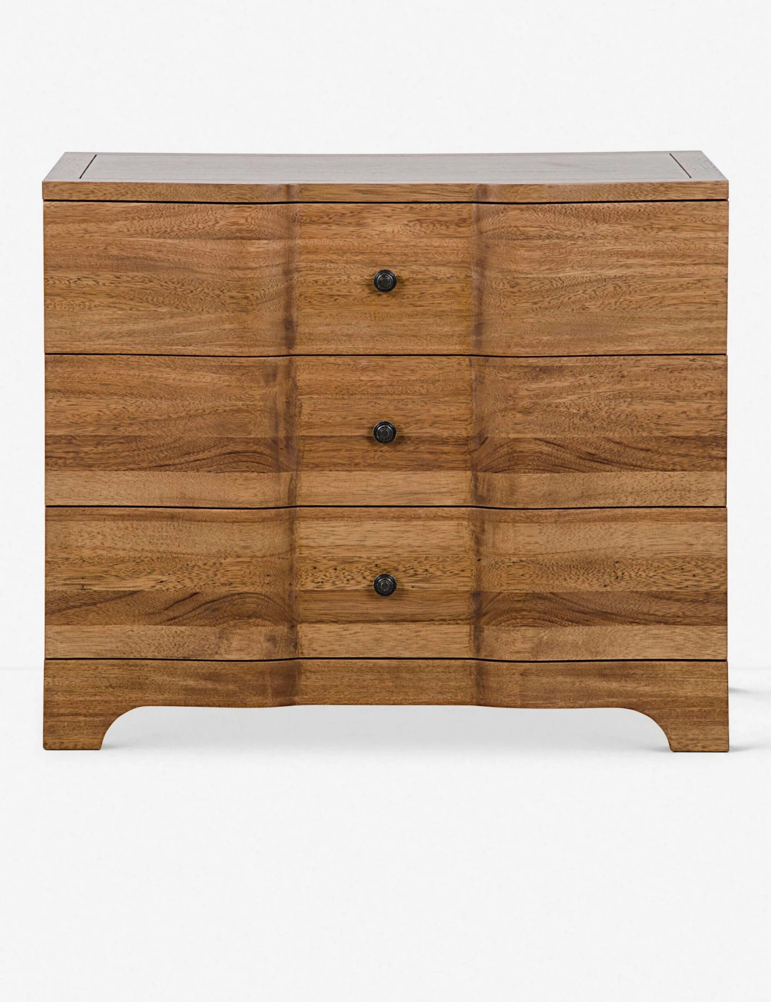 A more contemporary twist on a classic dresser design, this chest features a wave-like curve, adding extra dimension to the look. The dark stain brings out subtle details in the wood grain, making this an essential storage piece for traditional bedrooms.