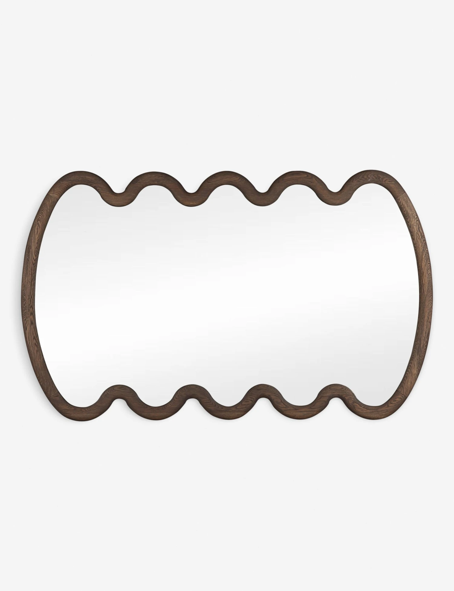The Nanala mirror brings an artful edge to the room. Its wavy frame strikes a modern look grounded in the timeless warmth of solid oak. We love this large wall mirror as a finishing touch that opens up the space and sets the tone for elevated decor.