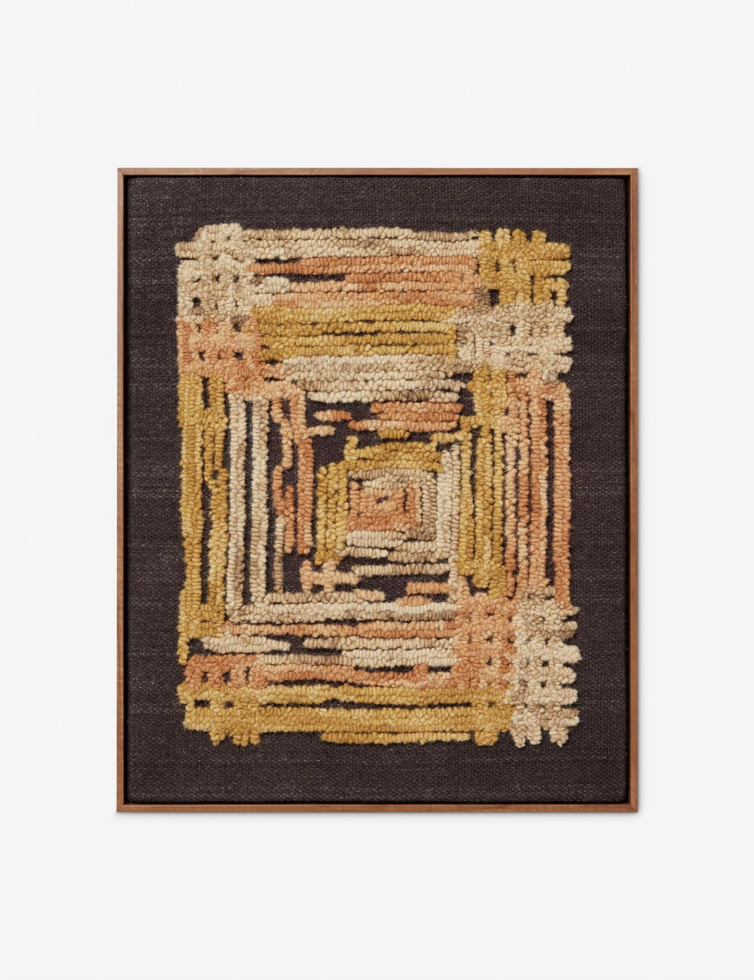 Turn up the texture in your wall decor with this stunning textile artwork. Its geometric design and modern palette make a striking statement in any room. In a light wood frame with a black backdrop, this piece pops in modern curations and transitional edits alike.