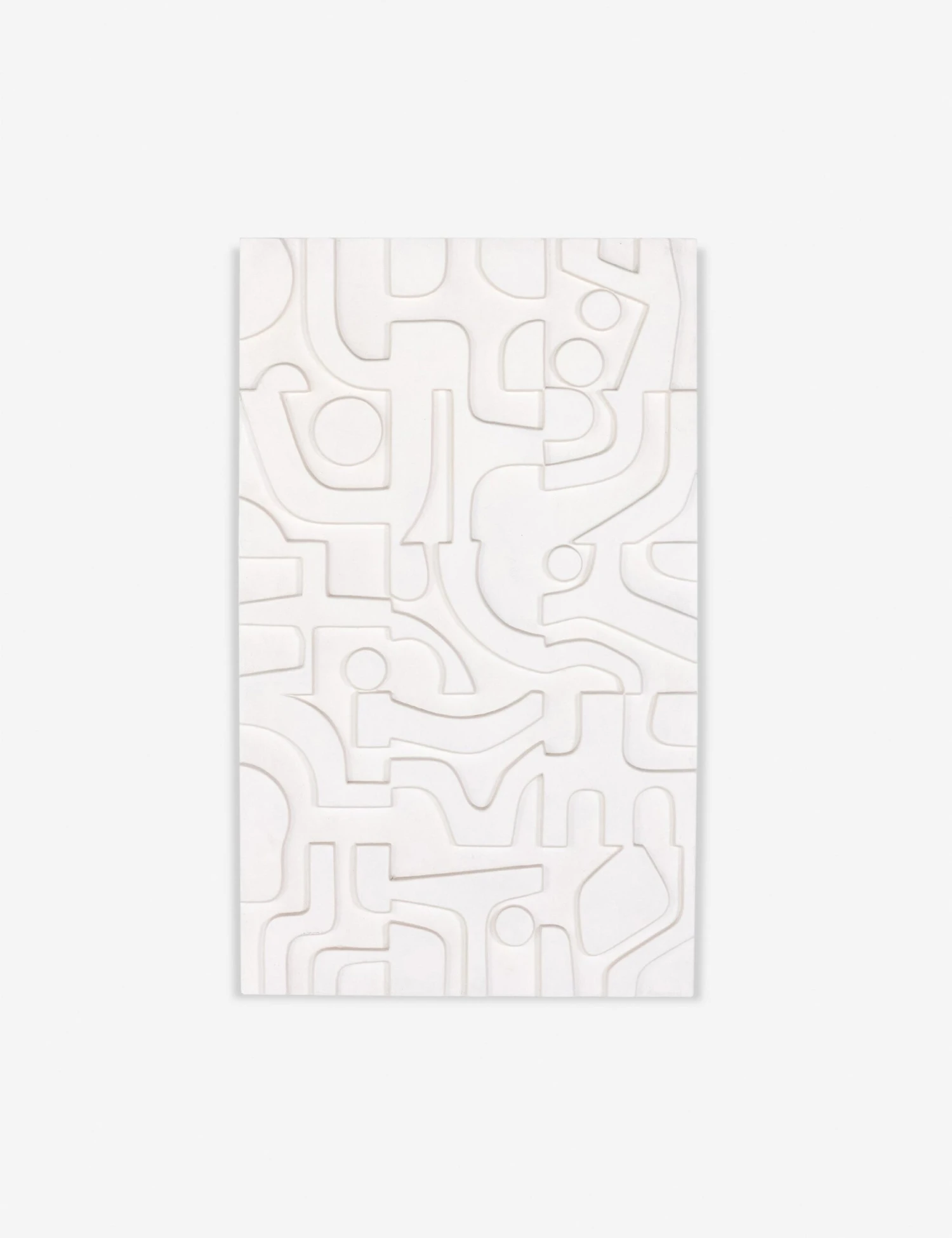 For a sculptural wall hanging both timeless and modern, this diptych pairs two plates of polished white concrete for a stunning visual conversation that will elevate a transitional space with their clean silhouettes. Style this as an understated wall art feature in a light neutral room for an embossed effect.