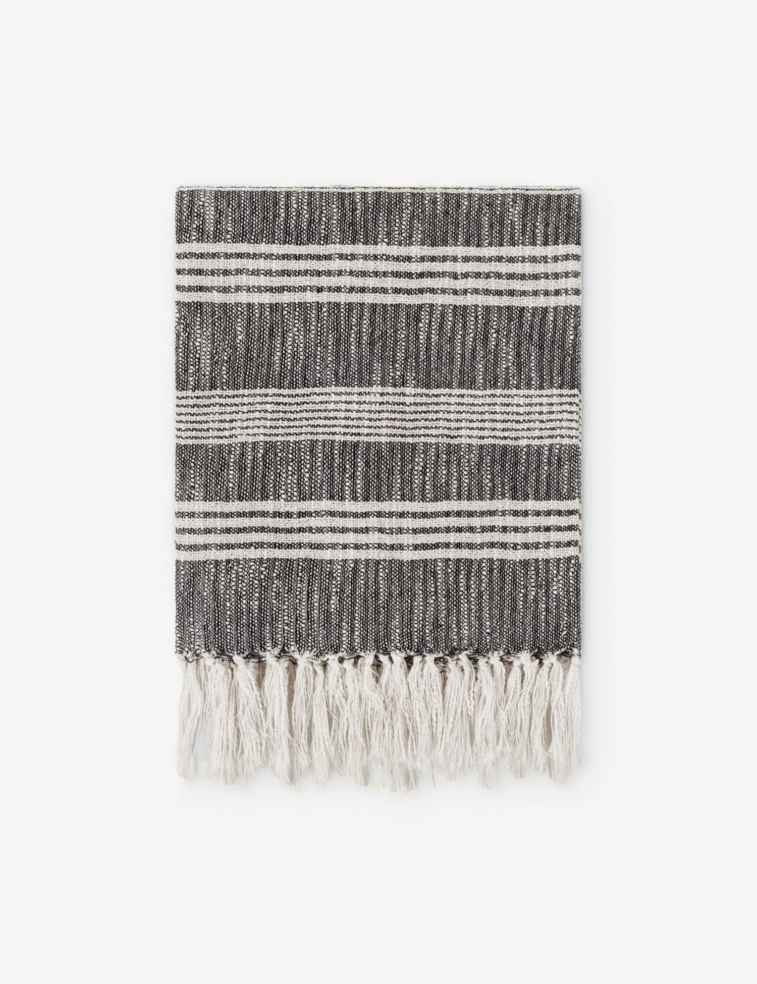 Layer up your cozy curation with the Onslow throw. The neutral palette and striped design layers a bold touch of pattern into any curation. A tassel fringe completes the look with a casual warmth.