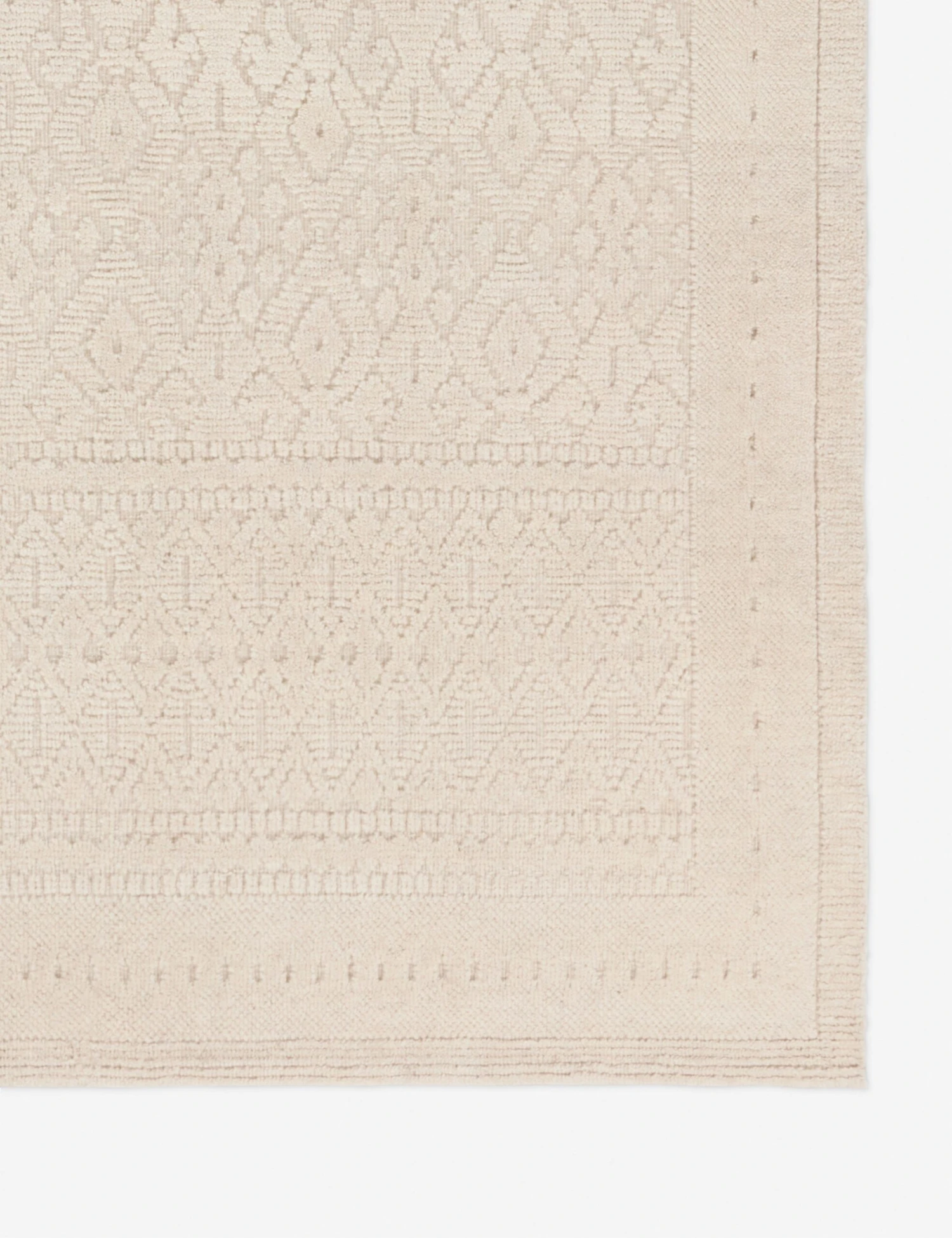 Set a lasting foundation for your style with this beautiful hand-knotted rug, made entirely from wool. Artisans hand carve the Moroccan-inspired trellis design into the plush pile, creating subtle but intricate motif. With its versatile, natural woolen hue and tactile appeal, this area rug makes an elevating anchor for a grounded living space.