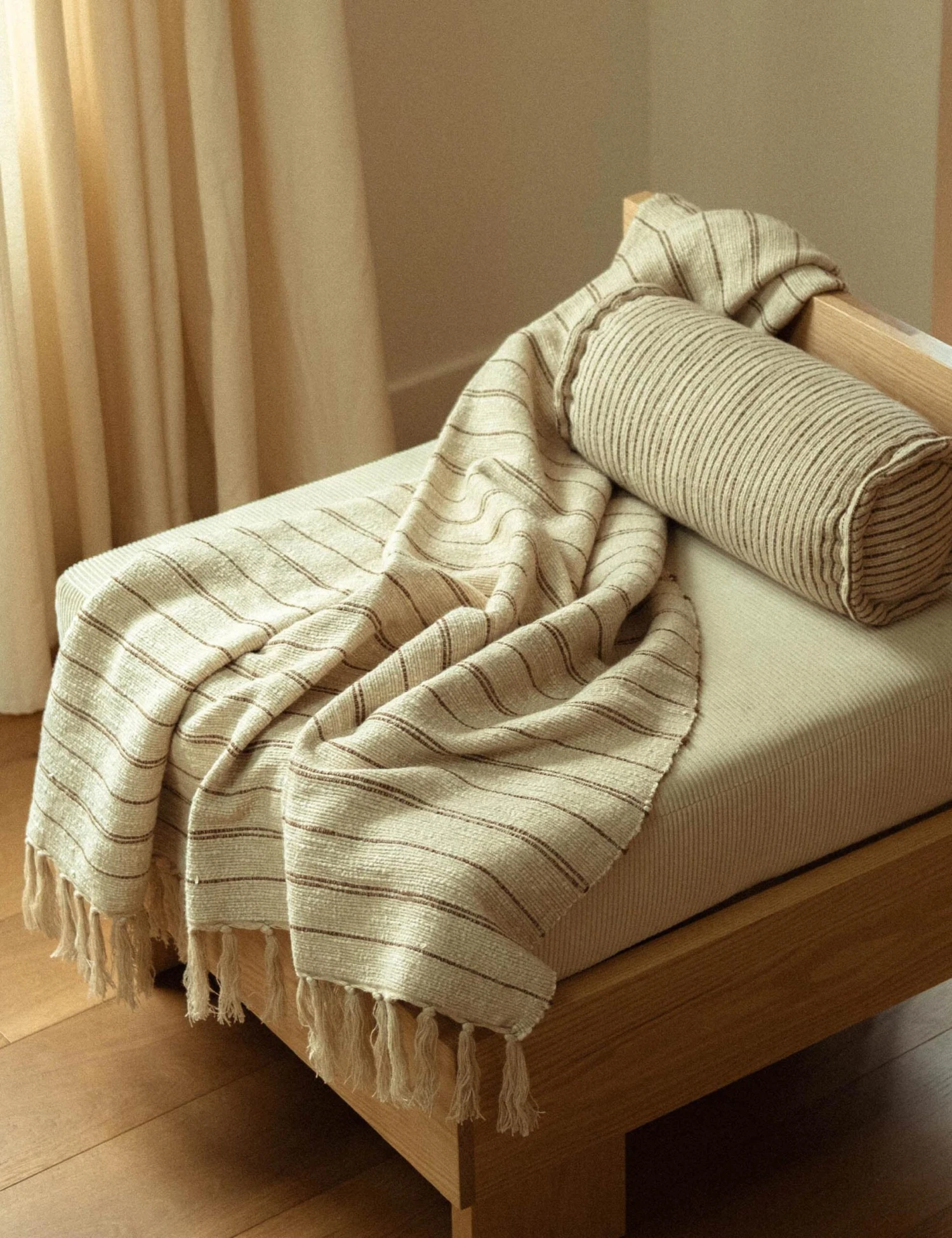Morrow Soft Goods brings sustainability to beauty—creating lasting products with a mindful approach inspired by the colors, patterns, and textures of nature. The Pia pillow adds a touch of warmth to your sofa or bed with its chestnut stripes and grounding neutral tone. We love the versatility of this bolster pillow as a finishing touch for an effortlessly modern curation.
