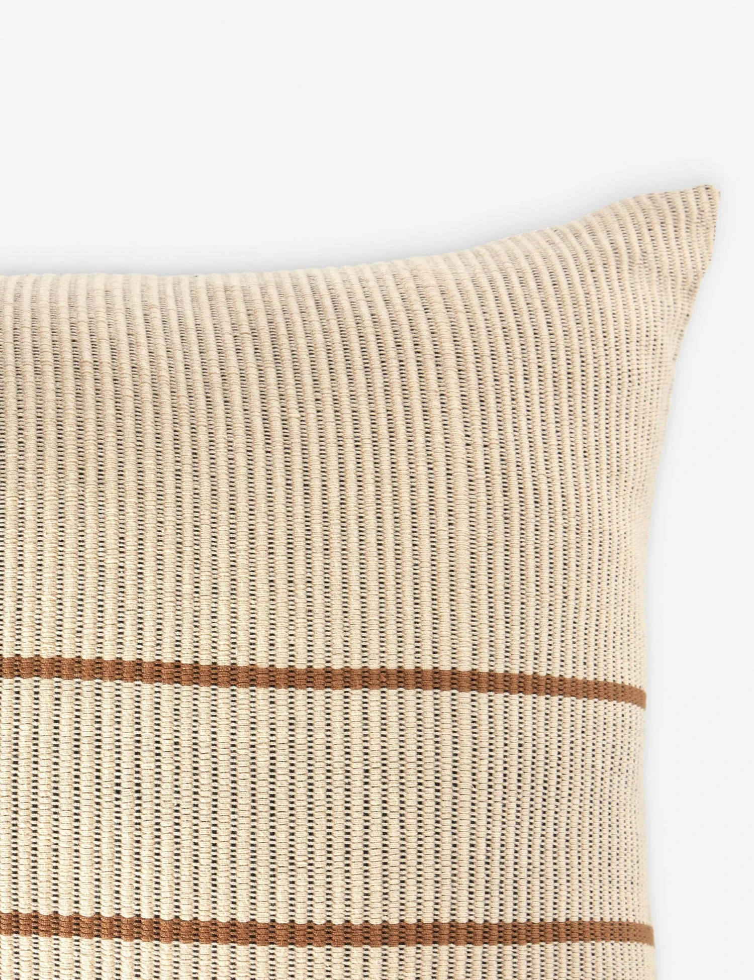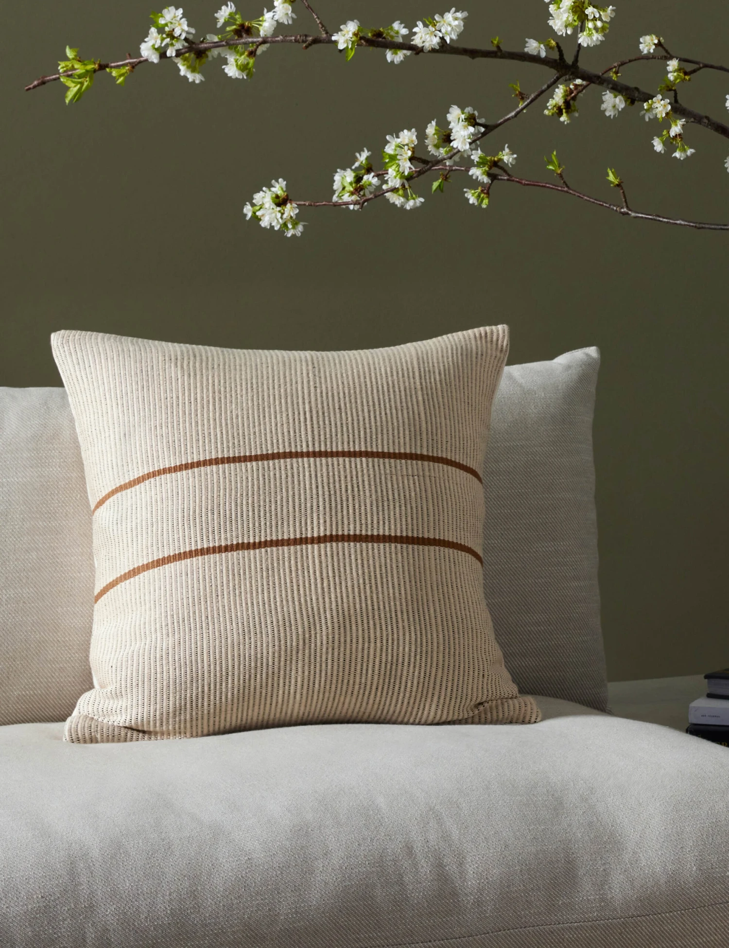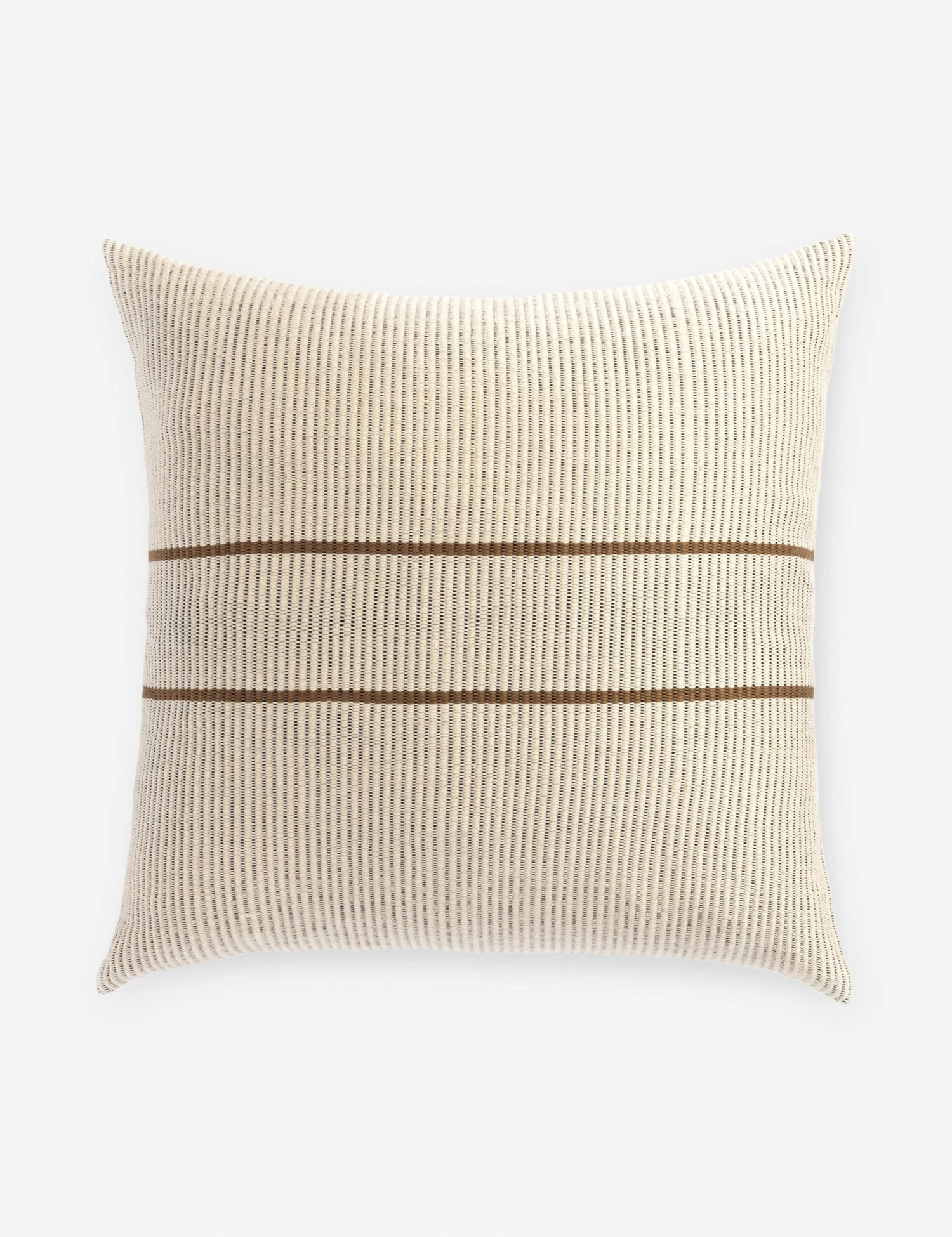 The Pico throw pillow is from a small-batch collection, handcrafted by skilled weavers in Mexico using a traditional technique. Each piece is made unique by subtle variations showcasing the artisan process. Two stripes set off a ribbed design in this texture-forward accent pillow.