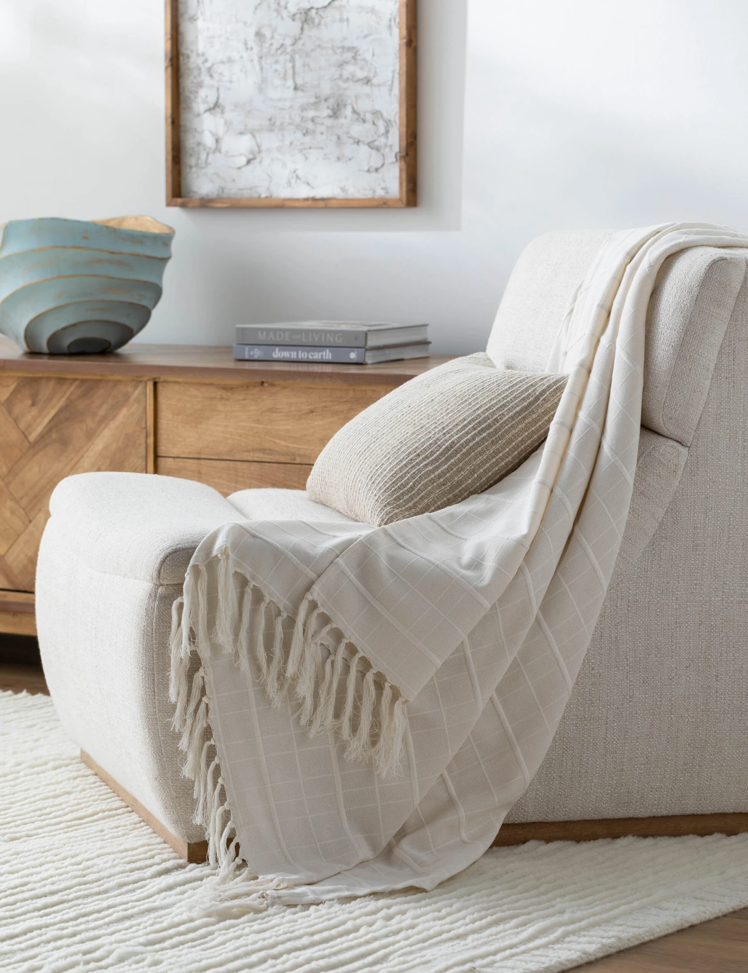 Becki Owens brings her hallmark blend of warmth and elegance to a collection of soft touches with Surya. The Prolo throw is a versatile addition to any mix. A generous fringe keeps the look casual and chic, perfect for elevated comfort in everyday spaces.