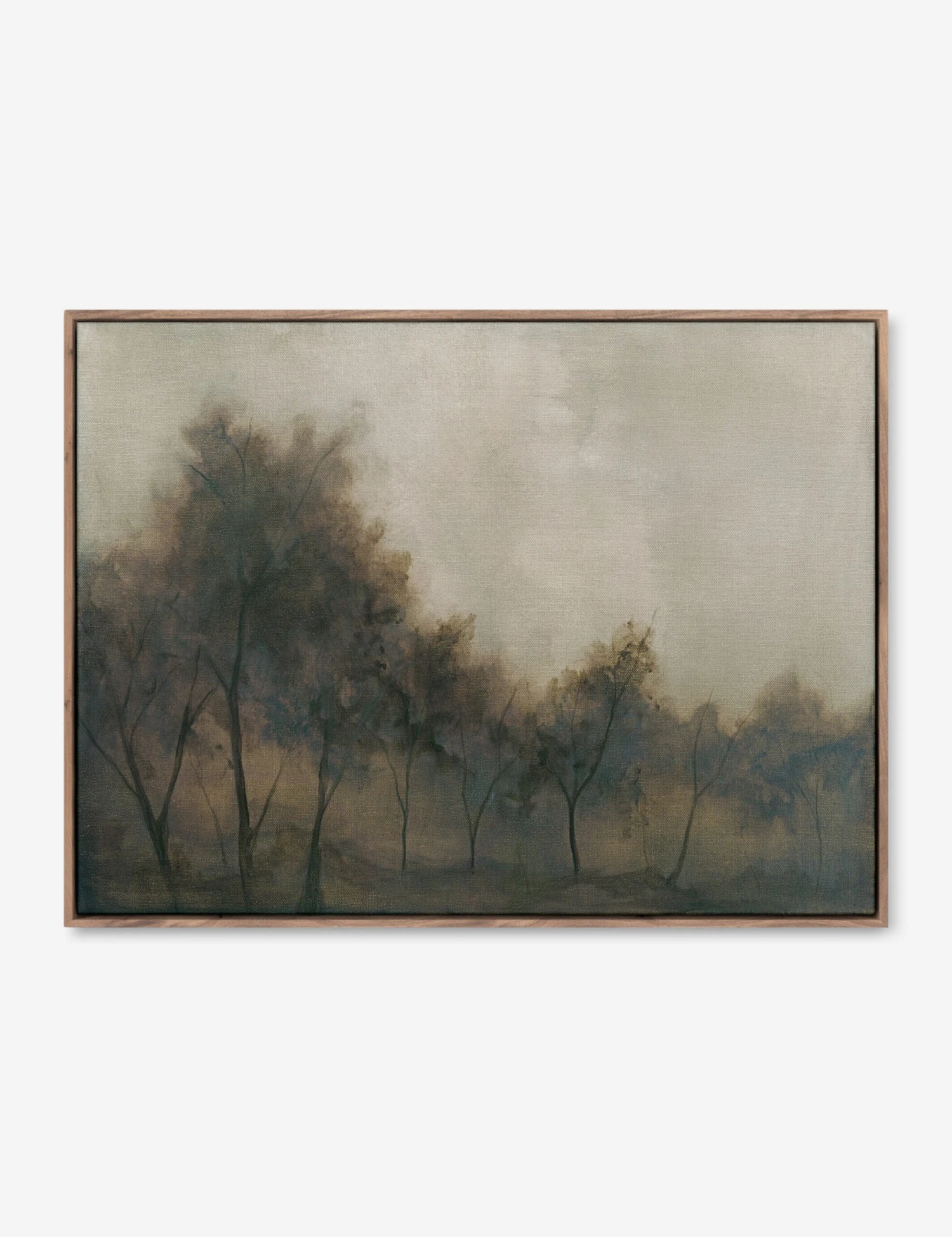 Brittney Schulz’s work showcases a timeless eye and soft, painterly style, offering a classic touch to any wall art collection. In this atmospheric landscape, dark trees create depth against a pale sky. The balanced composition is perfect for a moody curation or traditionally inspired gallery art wall.