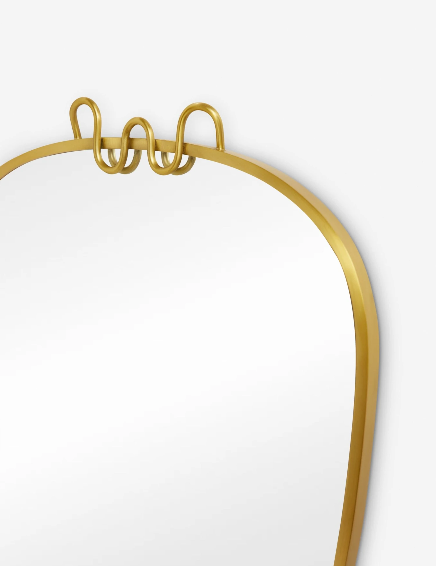 A playful ribbon detail tops this mirror’s soft-edged brass frame, adding a touch of charm to the clean shield-shaped design. It’s a polished statement that styles effortlessly in an entryway, bath, or bedroom. This accent mirror is from our exclusive Sarah Sherman Samuel collaboration and features all the trademarks of her warm, edited style.
