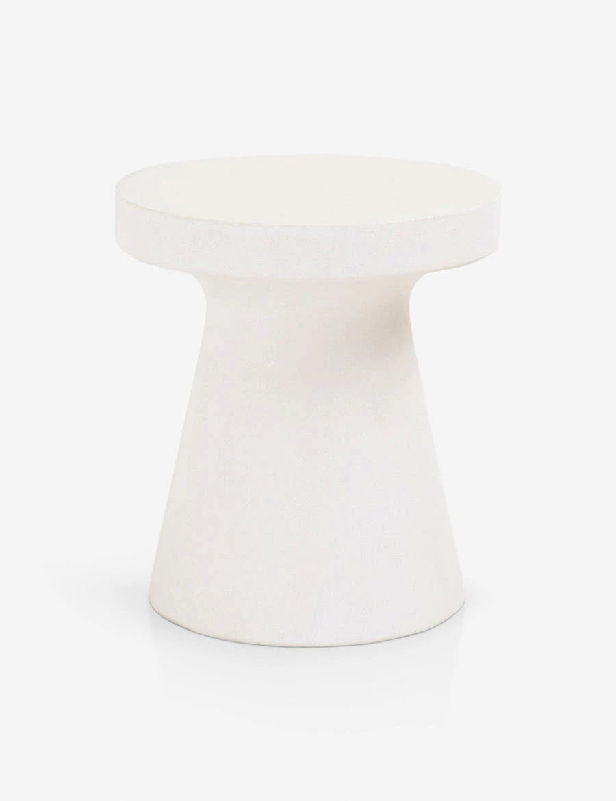 In a matte white finish, add a modern touch to your living spaces with this round, pedestal-shaped side table. Made from sealed concrete, this tactile accent table is both durable enough to sit outdoors and stylish enough to curate your living room with.