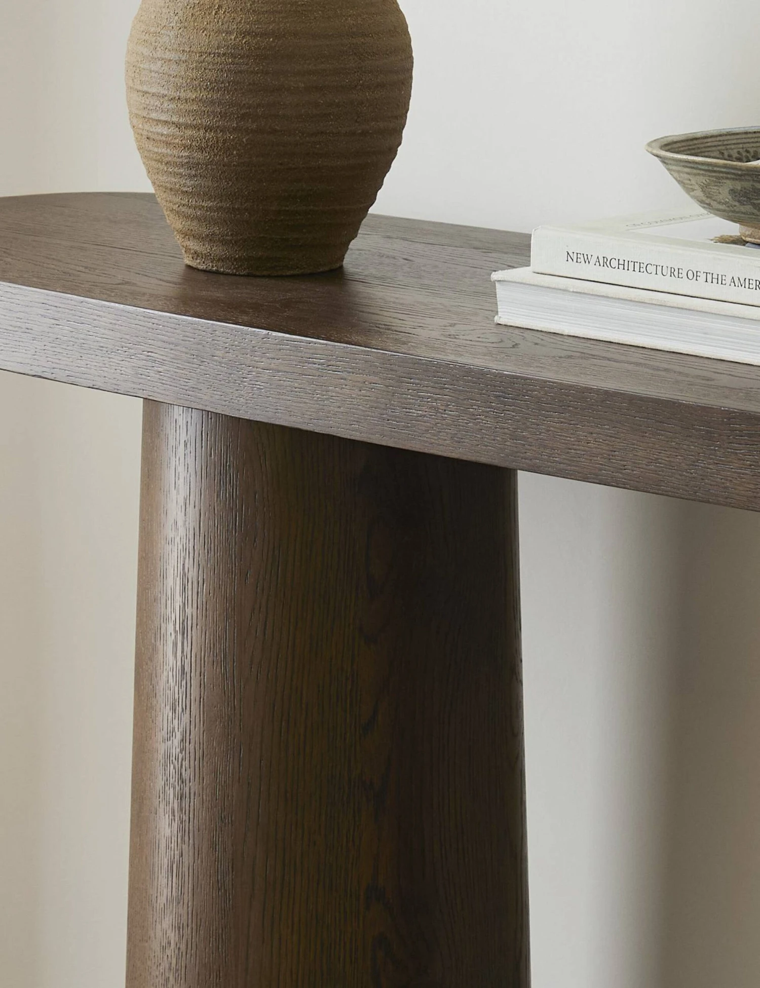 Rooted in sculptural simplicity, the Rosaldo console table offers a bold presence with a modern feel. Its softly curved lines and chunky silhouette balance refined craftsmanship with an organic edge. This piece grounds your space with impact, whether placed behind a sofa or styled as an entryway table.