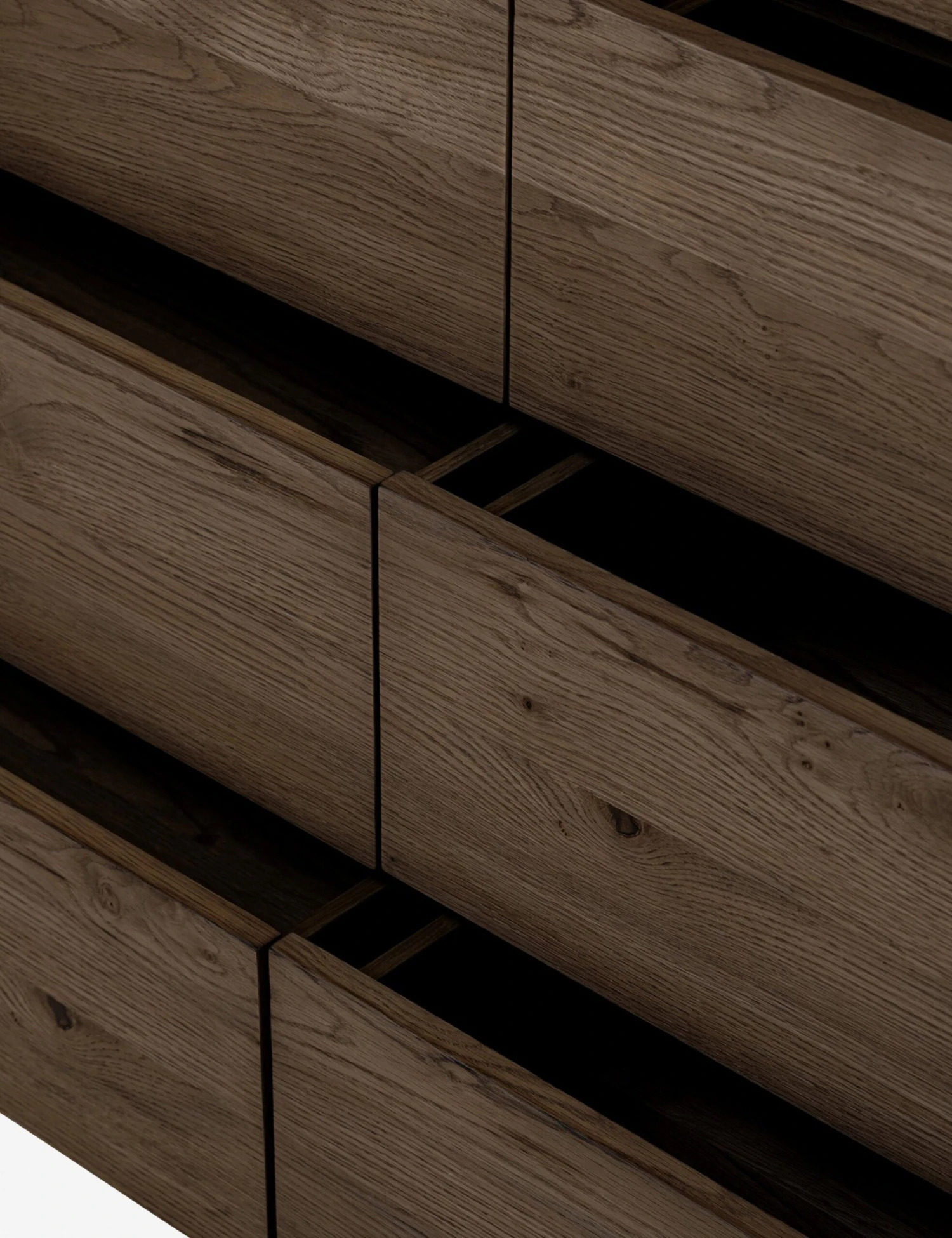 Rooted in sculptural simplicity, the Rosaldo dresser offers a bold presence with a modern feel. Its softly curved lines and chunky silhouette balance refined craftsmanship with an organic edge. With six spacious drawers and a grounded profile, this wood dresser adds structure and style to your bedroom edit.