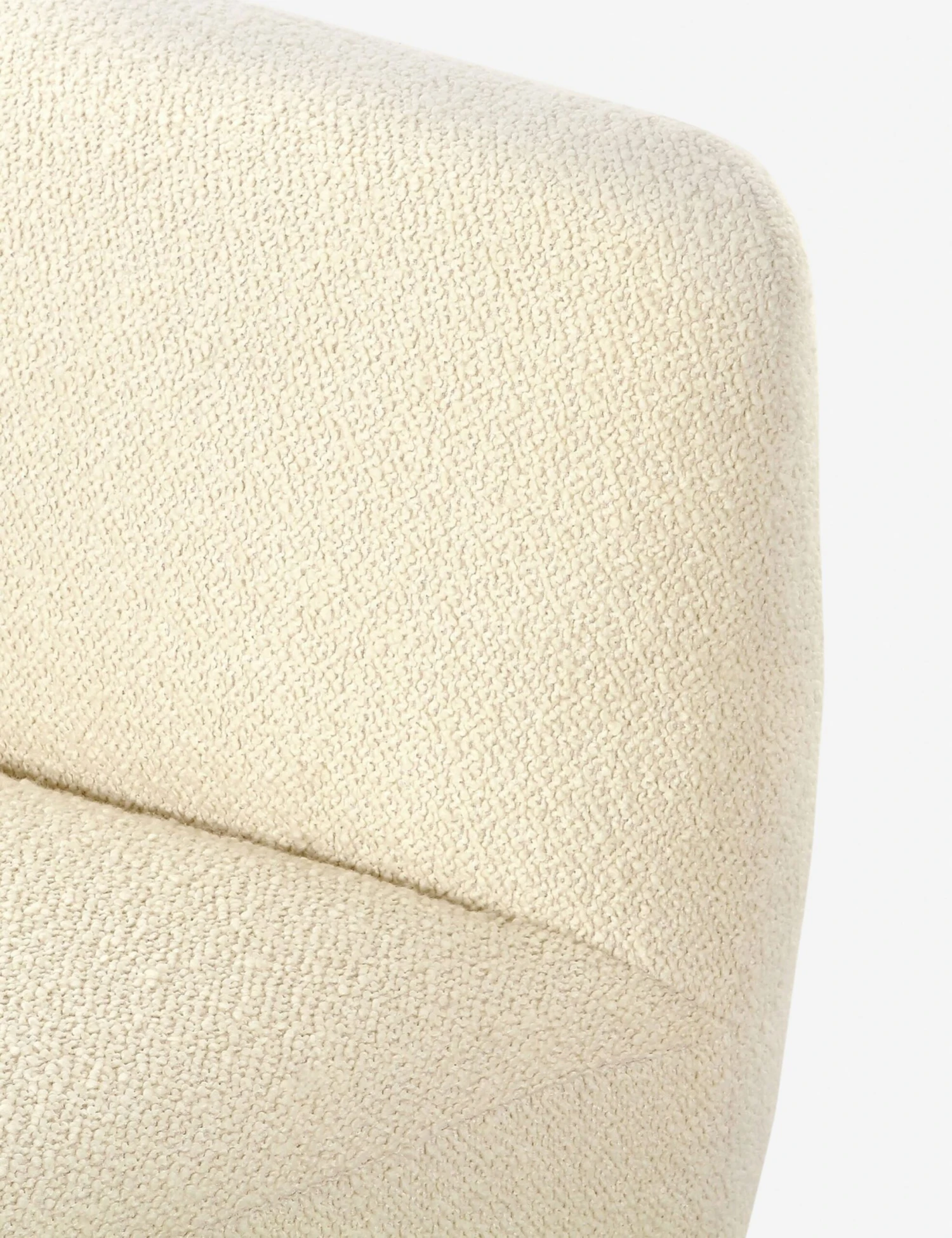 A clean, low-profile design brings a modern sensibility to the Rosoff chair. Its sleek armless silhouette is wrapped in a textural cream fabric, presenting a versatile yet stylish seat you can style as an accent chair or in multiples to create your own sectional.