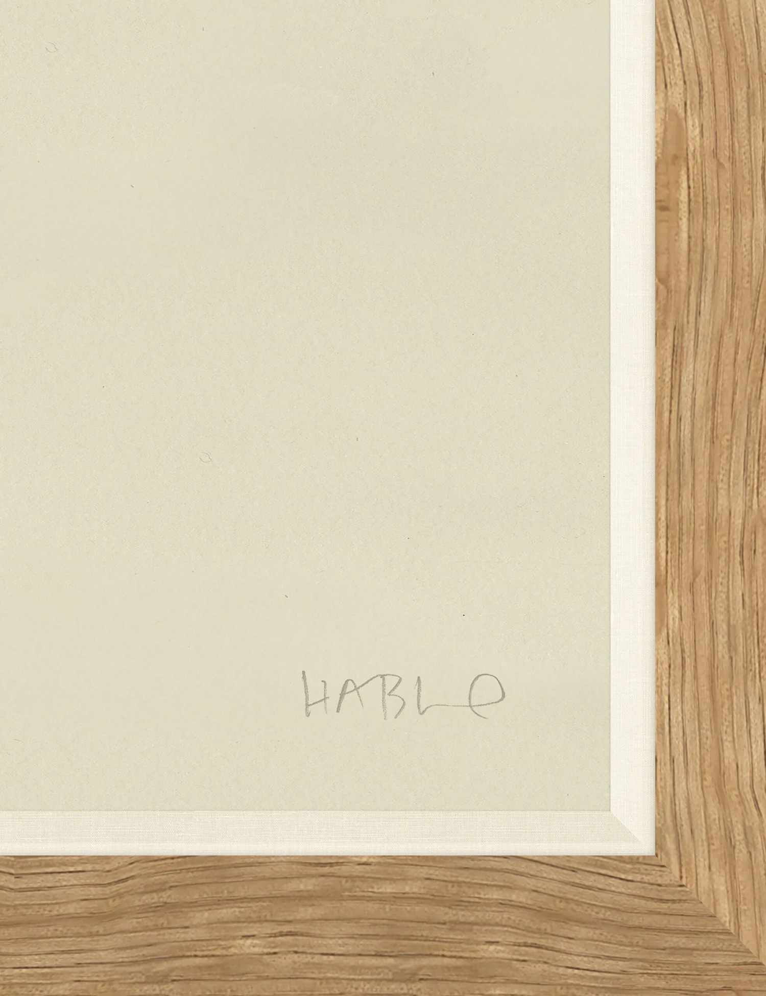 A broad botanical form in silhouette fans out across this minimalist artwork by Susan Hable. We love the crisp edge of the shape and the texture suggested by the fine lines—a striking addition to any curation, whether styled as a standalone piece or as part of a salon-style art wall.