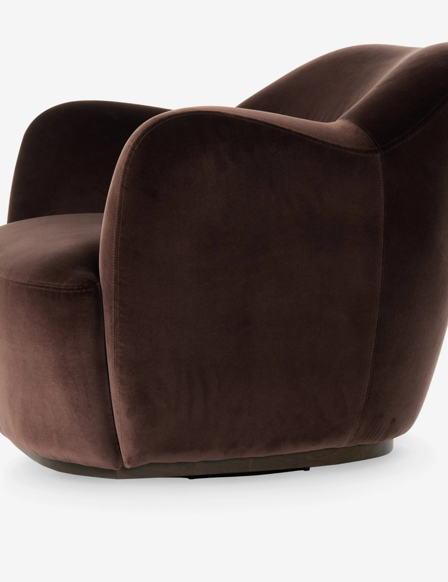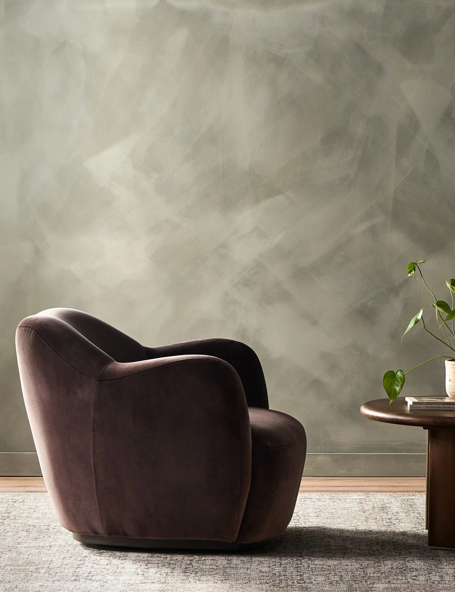 Sculptural lines invite you into the Selkie chair with a contoured seat and soft silhouette. Plush upholstery completes the look with a stylish edge set for seamless comfort. With its swivel base, this modern take on the classic barrel chair is tailor-made for an artfully curated yet livable home design.