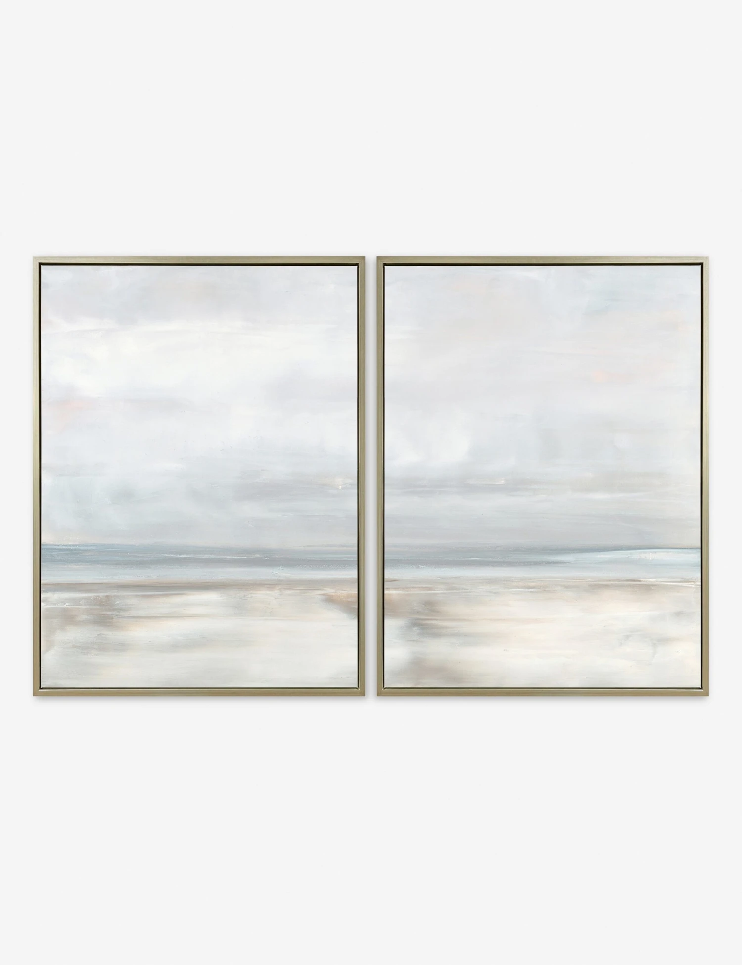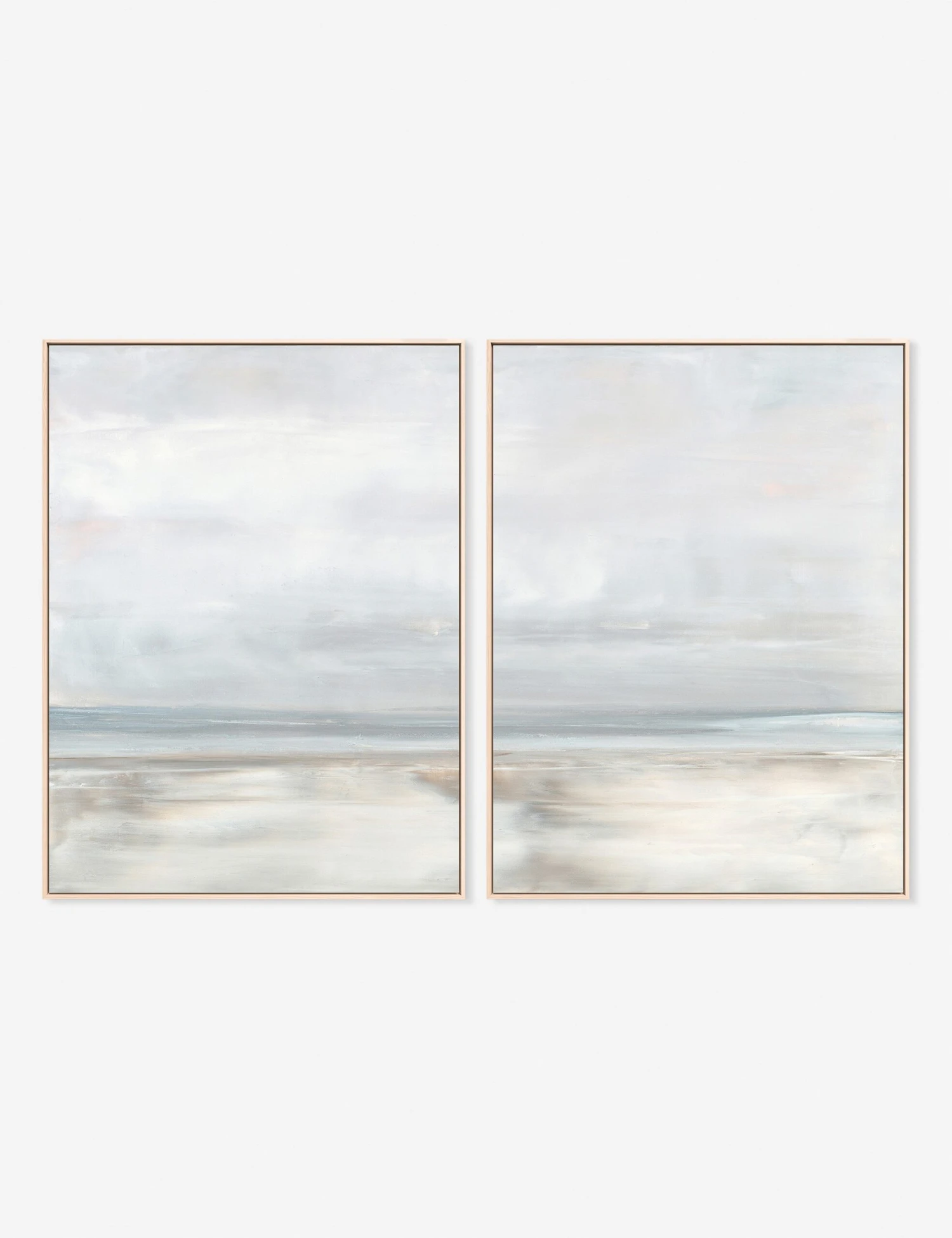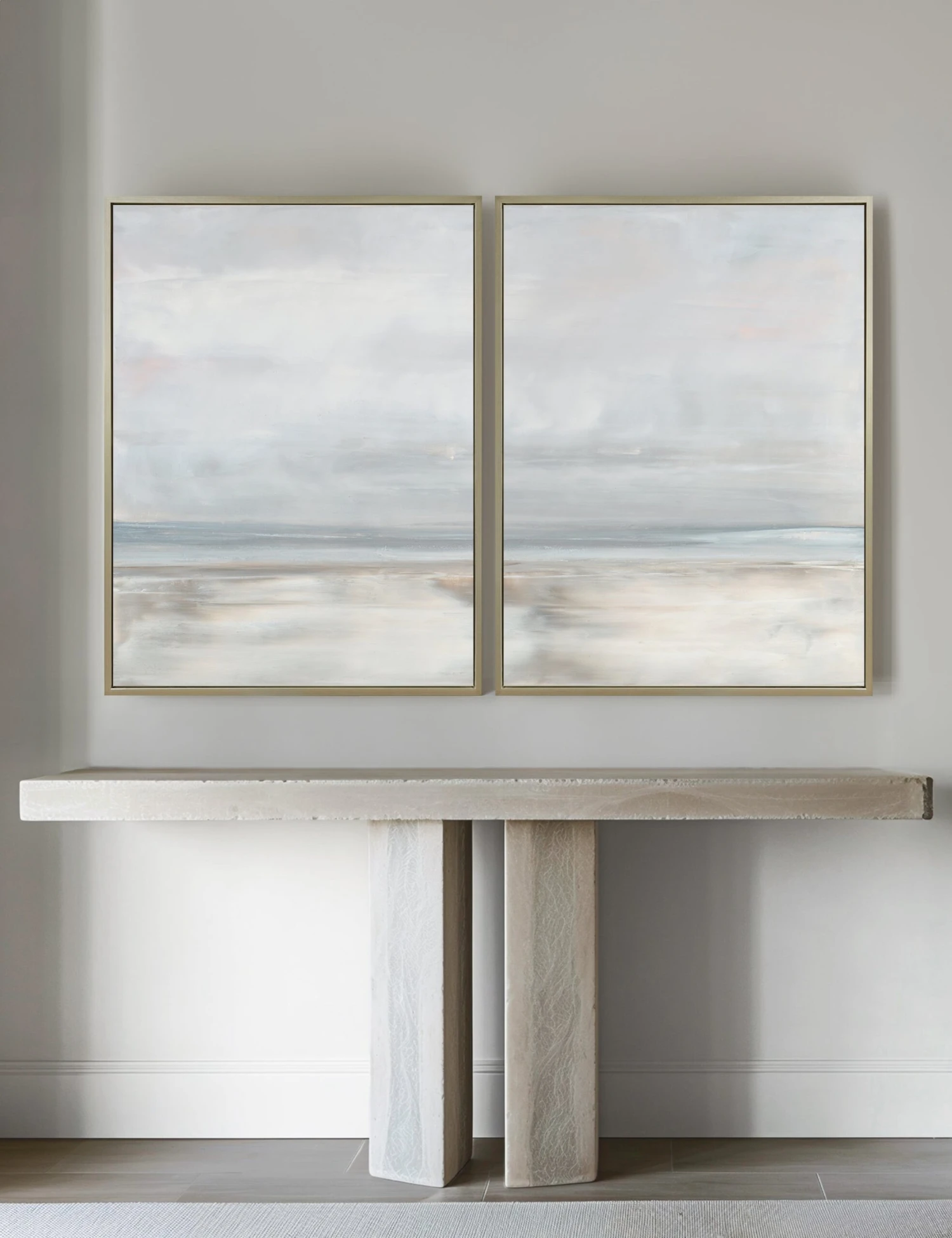Bring a tranquil tone to your wall art with this abstract landscape by Carol Benson-Cobb. The composition suggests a coastal scene with layered gray-blues, taupes, and creams that form a soft horizon. We love this diptych’s serene feel for creating a moment of quiet depth in your wall decor.