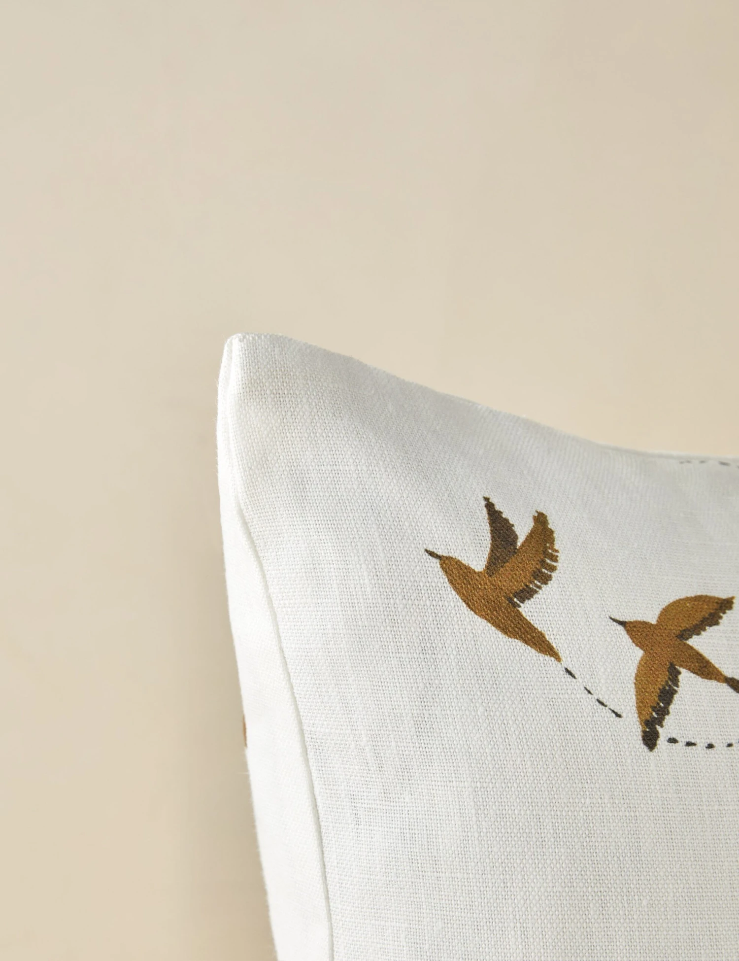 Designed exclusively for Lulu and Georgia, our Rylee + Cru collection features timeless and whimsical designs inspired by travel, nature, and vintage illustrations. On this linen throw pillow, delicate birds take flight across a solid field. The natural touch and strength of the linen make this an elegant accent pillow for an everyday living space.