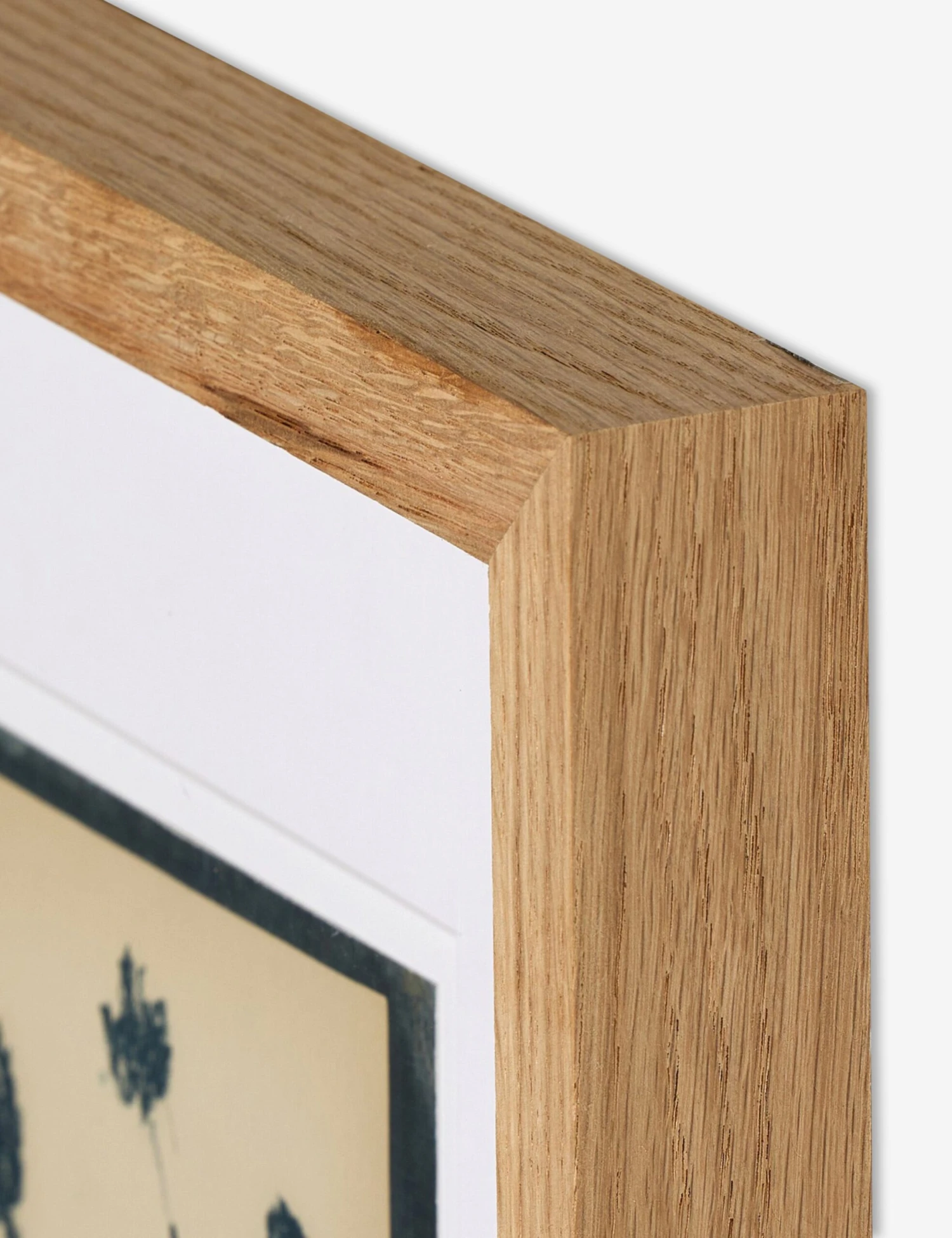We love the delicate elegance of this botanical silhouette. The piece features floral forms in contrast against a soft cream backdrop, sectioned and bordered in black—the perfect addition to a refined curation. The artwork is float-mounted and matted for a striking presentation.