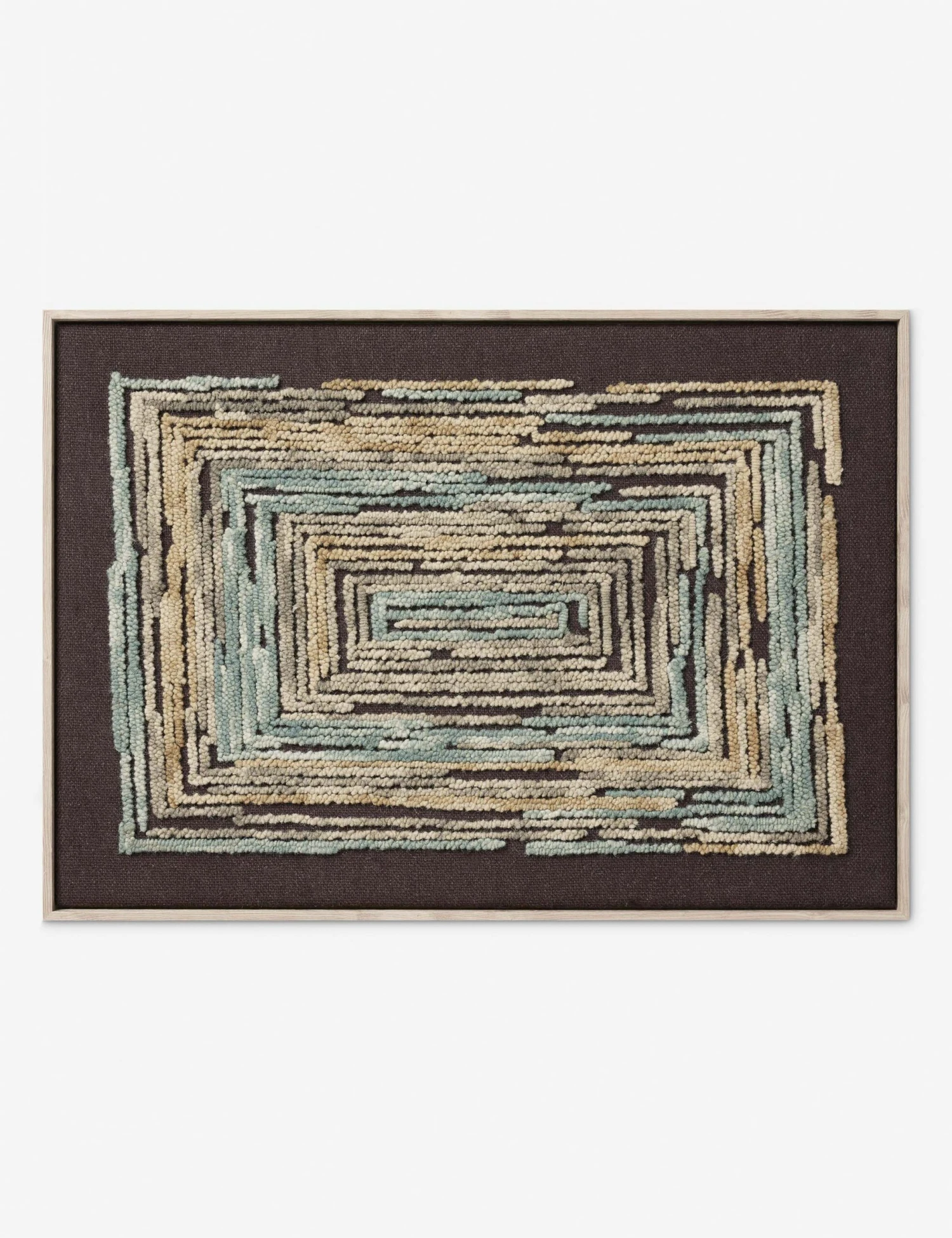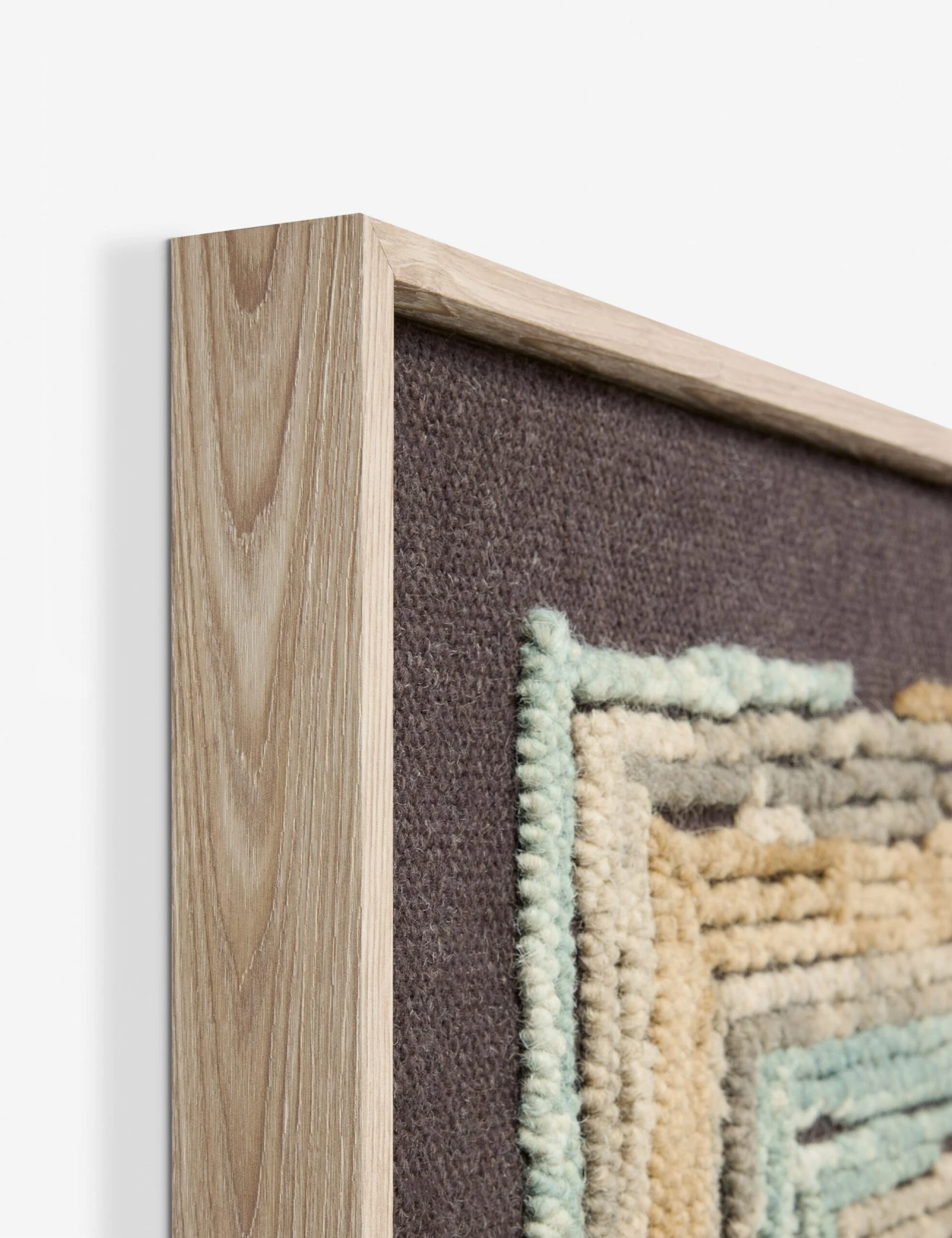 Time for a touch of texture in your wall decor. With its geometric design and autumnal tones, this textile artwork layers warmth and character into any space. In a light wood frame with a black backdrop, this piece pops in modern curations and transitional edits alike.