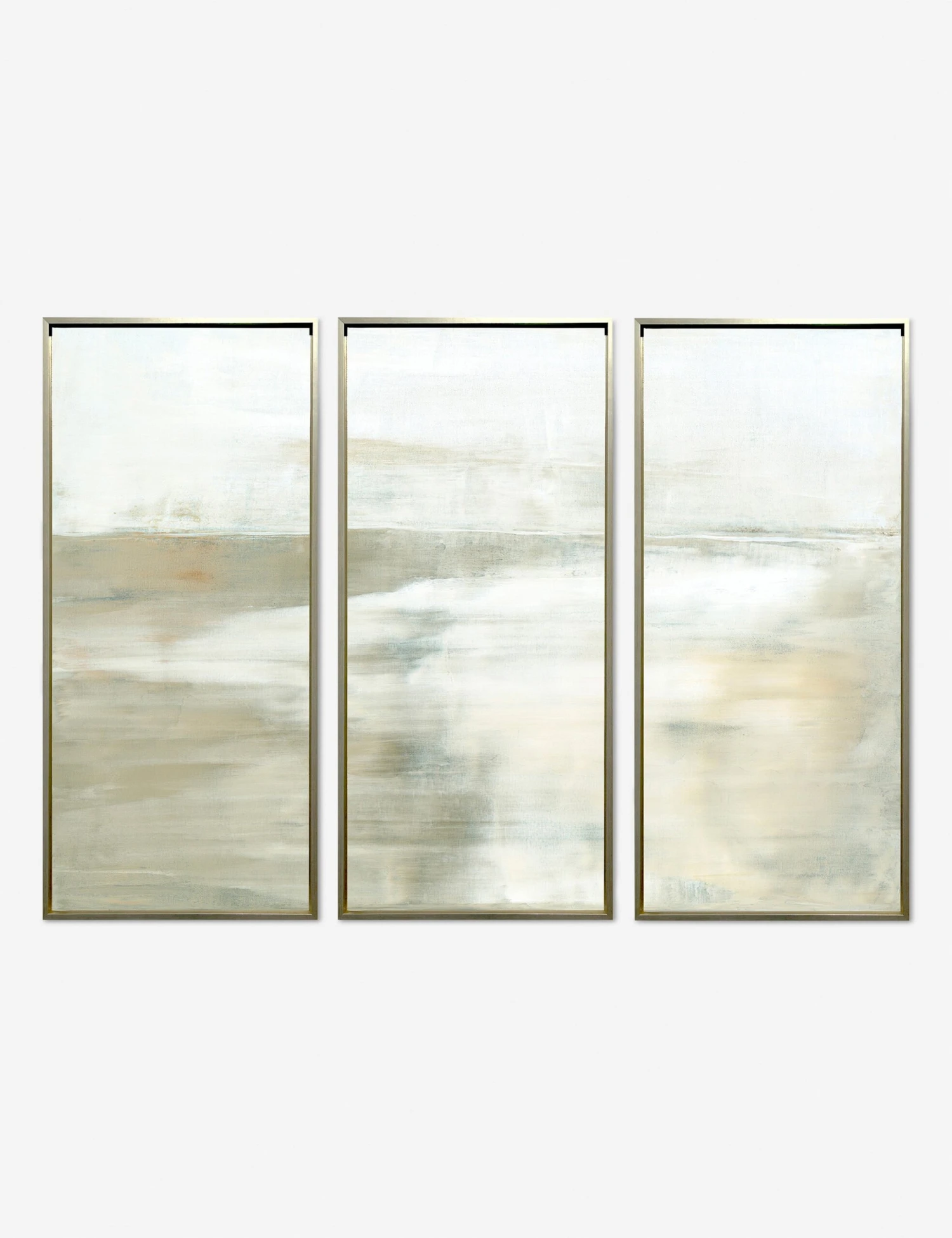 There is a quiet depth in the abstract composition and layered tones of this triptych by Caroll Benson-Cobb. The ethereal quality of the artwork makes it the perfect addition to a space that promotes stillness and reflection with curated wall decor.