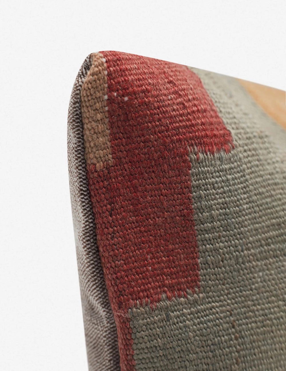 A vintage decorative pillow instantly adds warmth, stunning detail, and natural striations in color. Handcrafted from vintage wool kilims, these Turkish throw pillows are incredible layering pieces. Richly textured and full of pattern, this lumbar cushion feels like a discovery from far-flung travels.