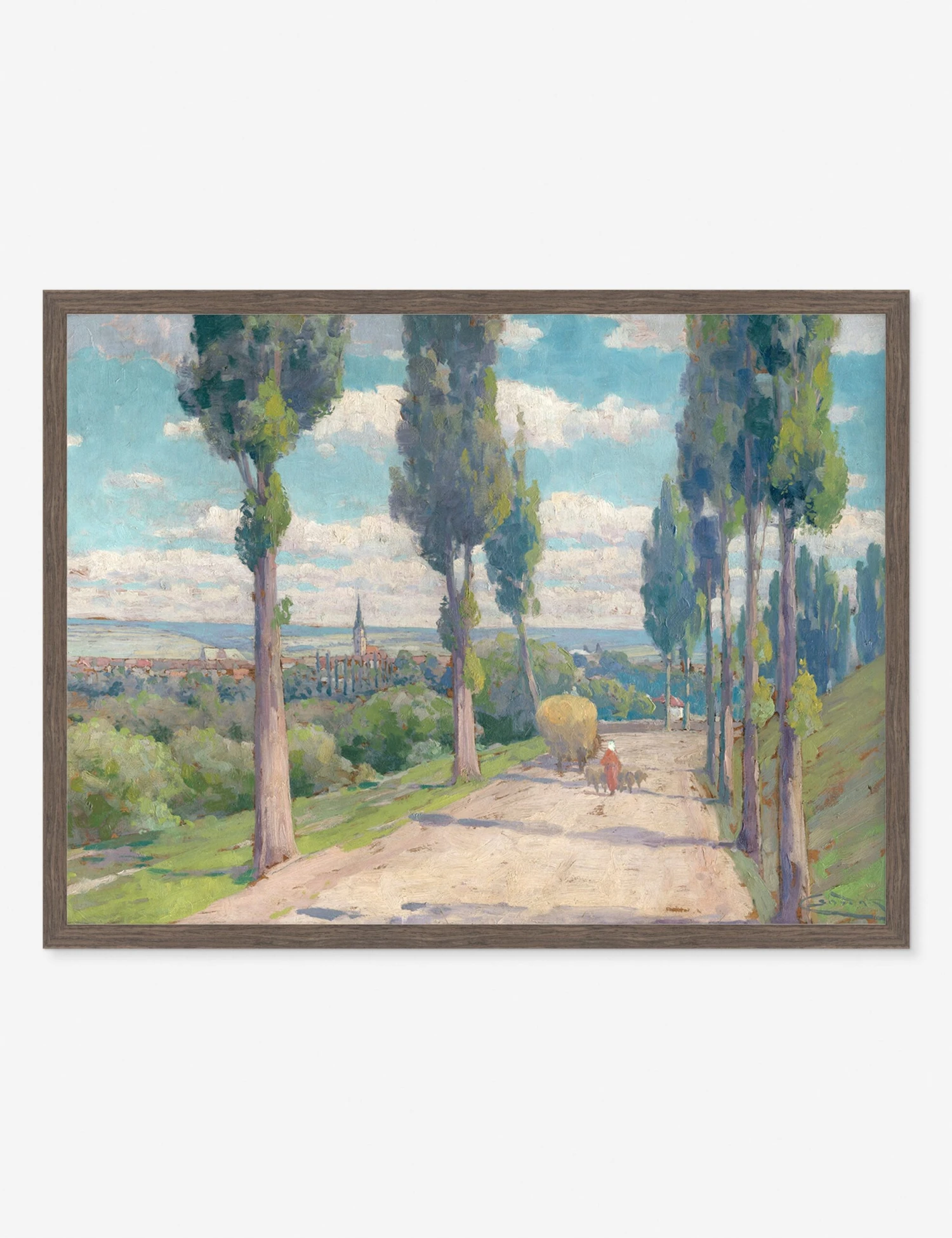 Bring bright depth to your wall decor with this fine art print. The landscape piece captures a shepherd amid a lush pastoral setting with a village and steeple in the background. The soft, painterly quality and colorful palette add a classic touch to any wall art curation.