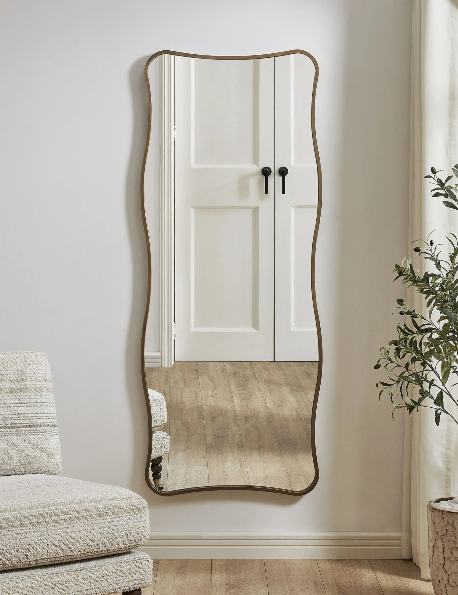 The Yuna mirror pairs undulating lines with a balanced form for a refined take on modern wall decor. This full-length mirror adds a sculptural dimension to your space, amplifying light and opening up the room with a soft yet striking silhouette.